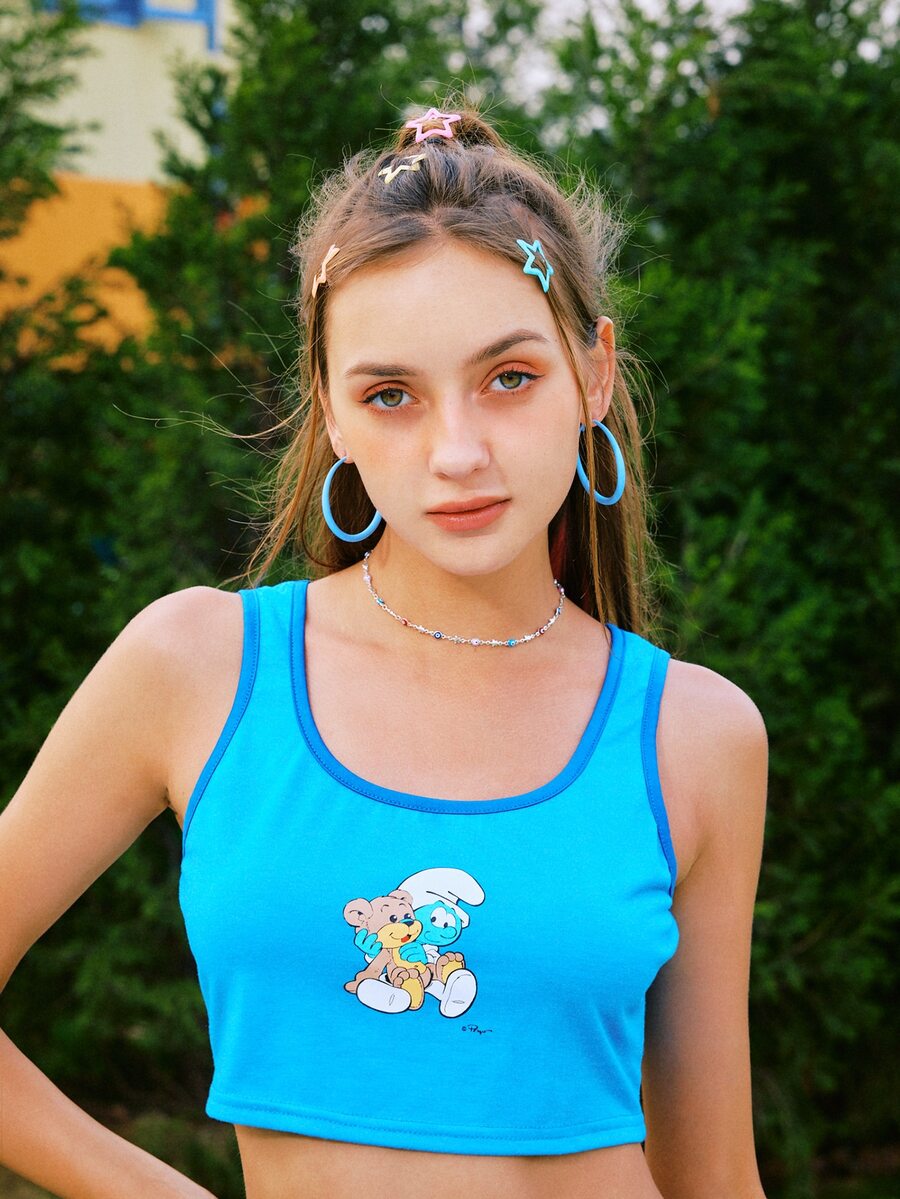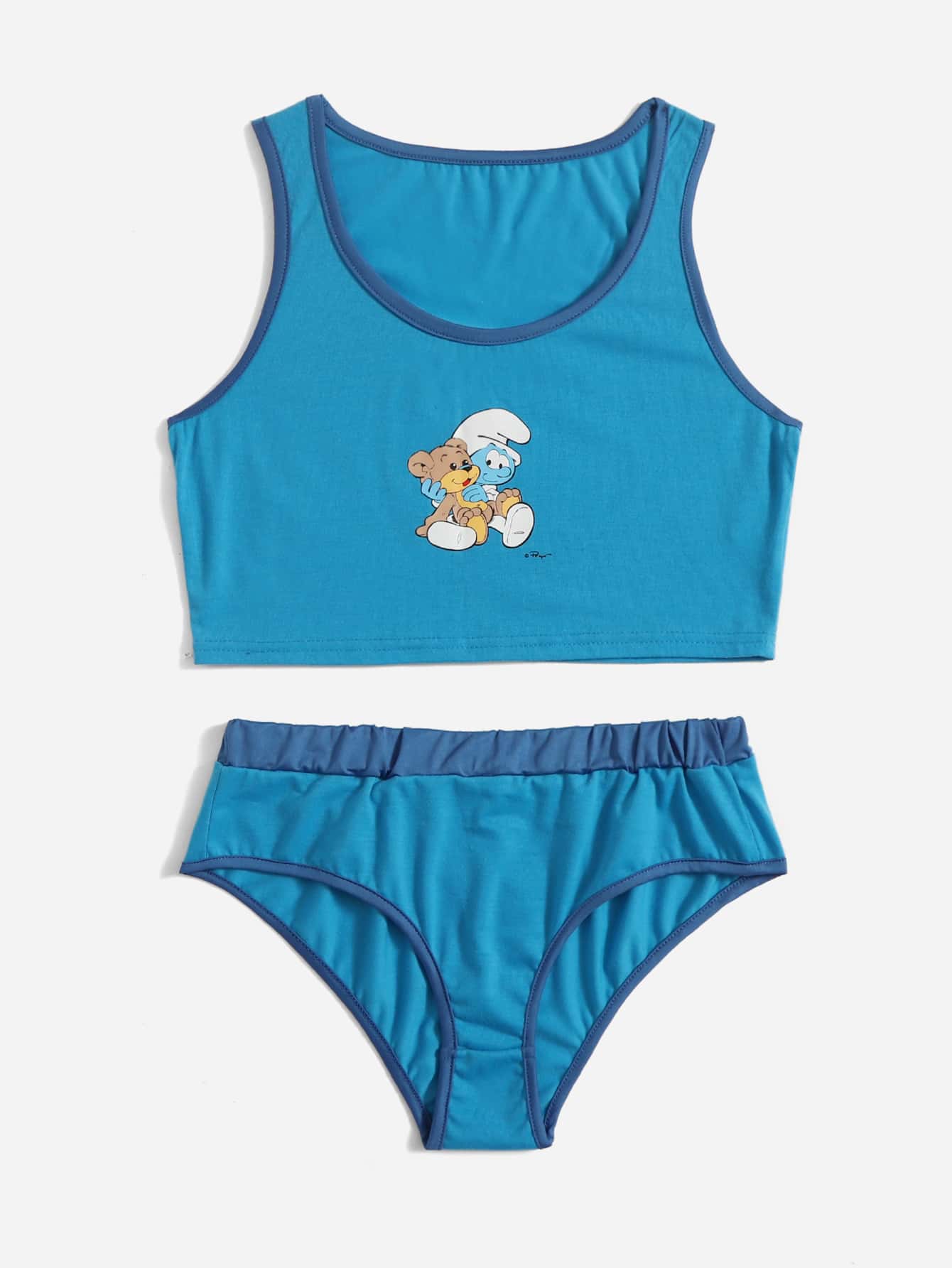 ROMWE X The Smurfs طقم بيجامة صور رسوم كارتون