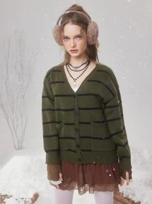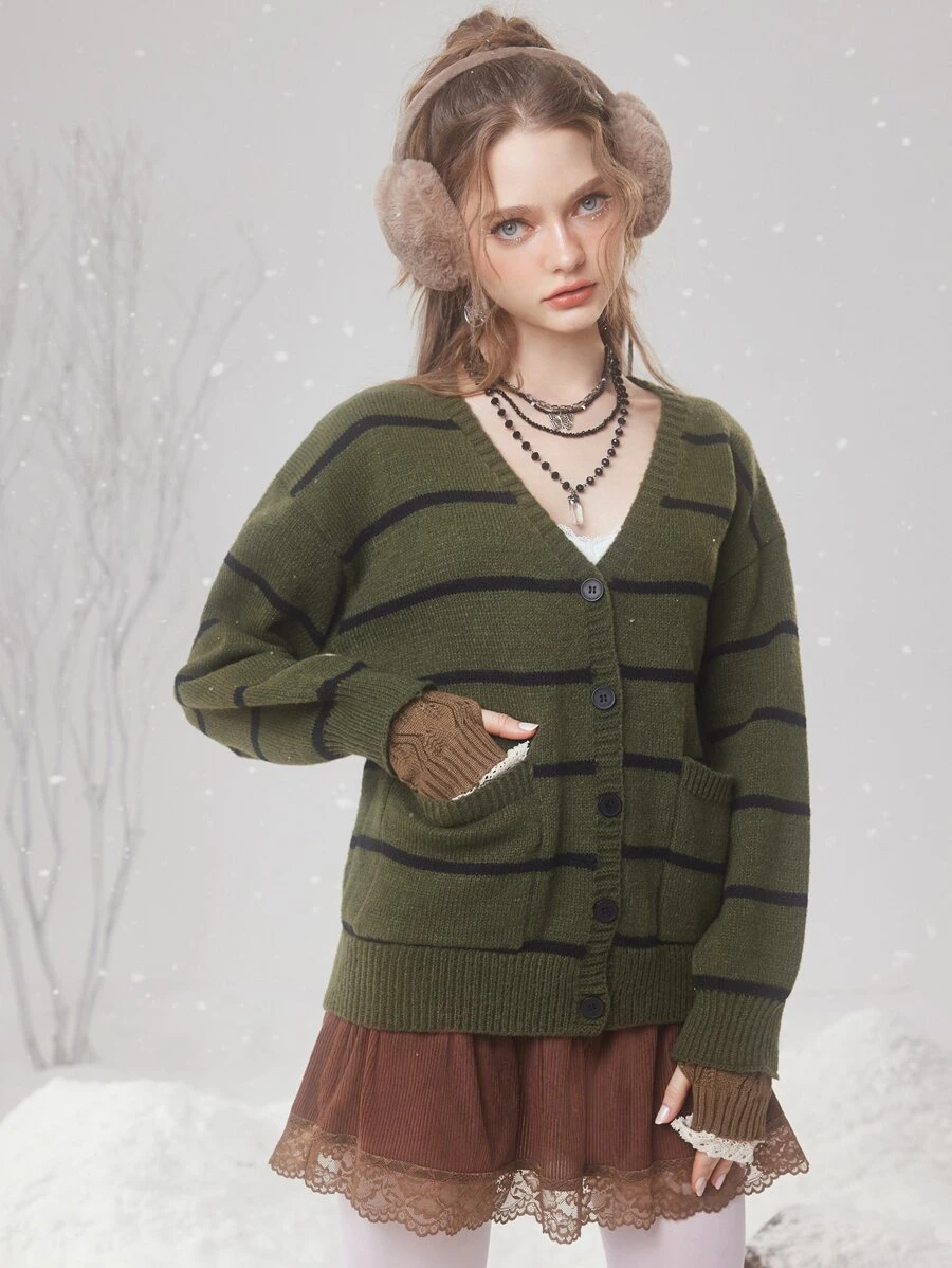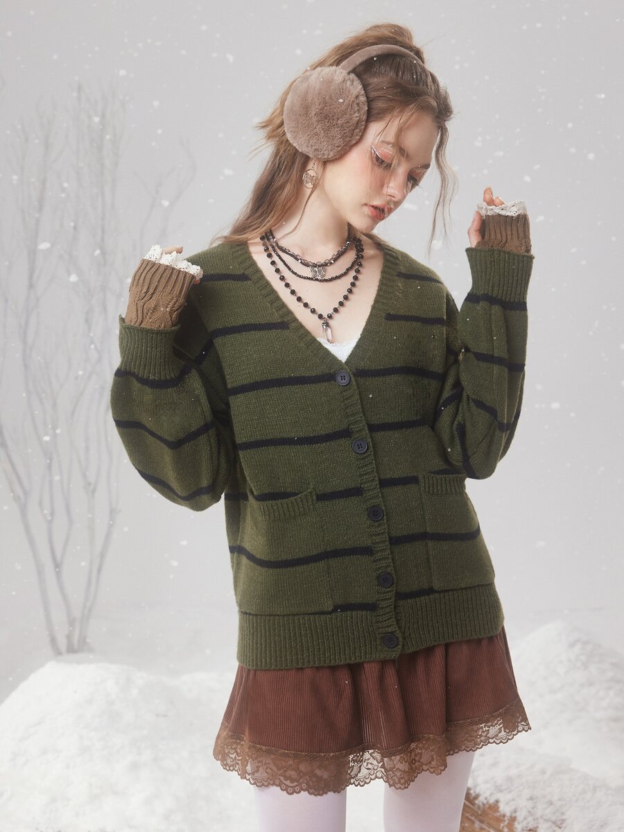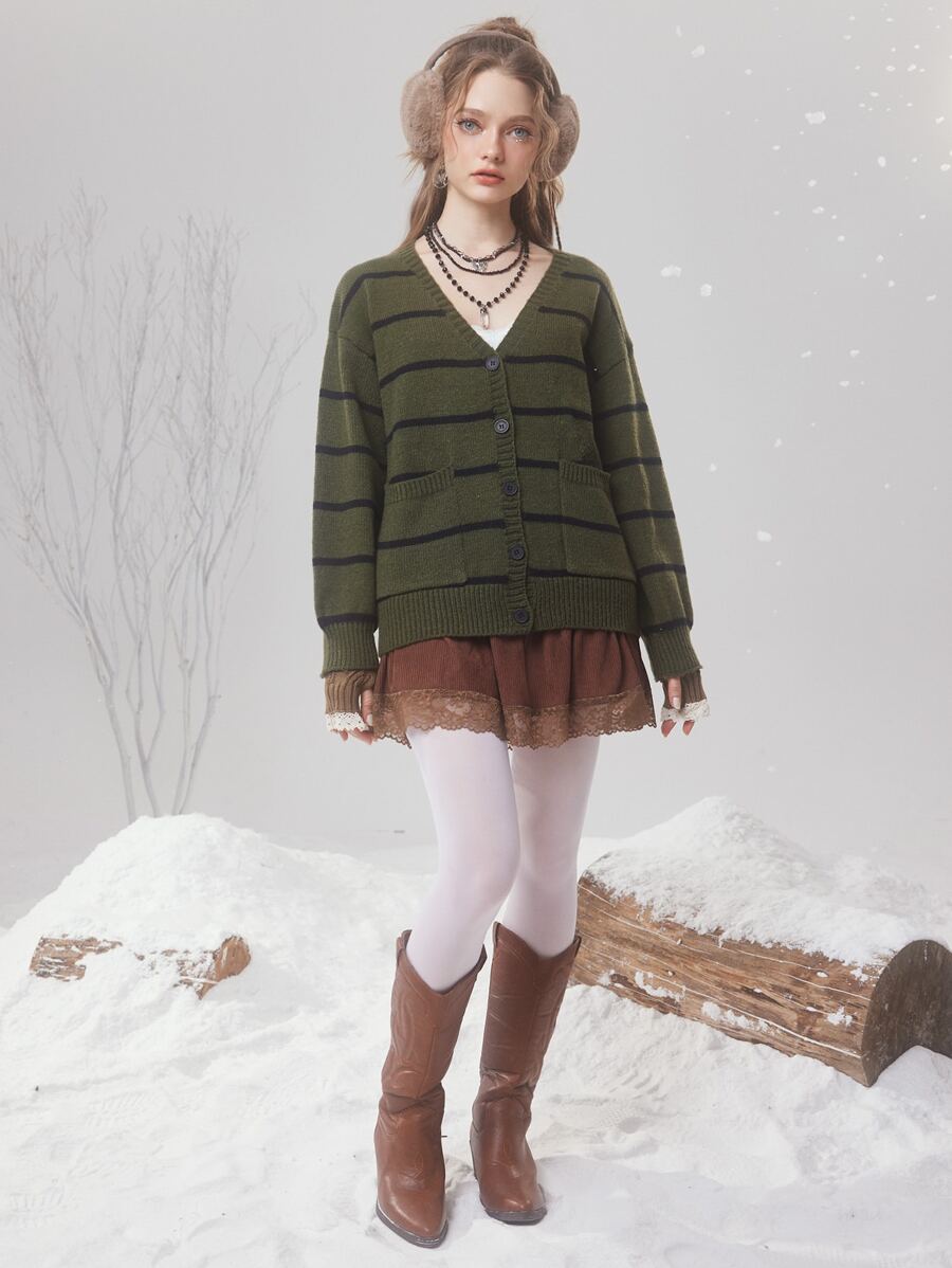 Fairycore كارديجان نمط مخطط منخفض الاكتاف