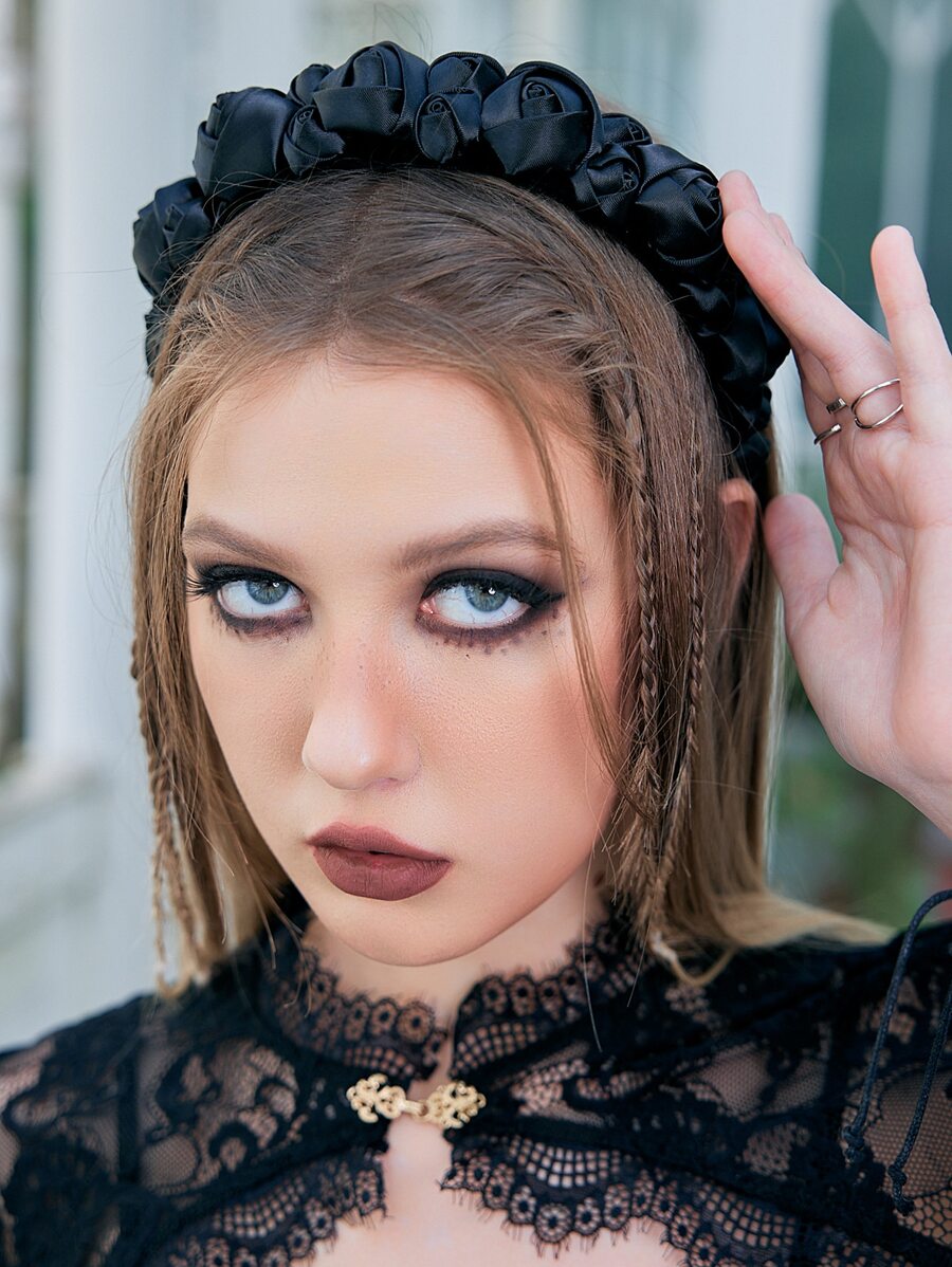 Goth طوق الشعر مزخرف بزهر