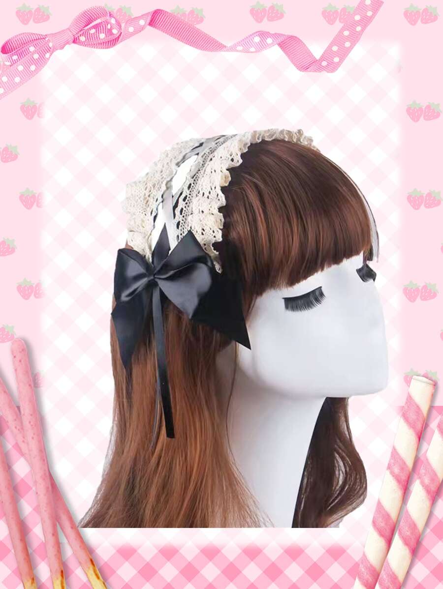 Anime عصابة شعر مزخرف بقوس مقلم بكشكش