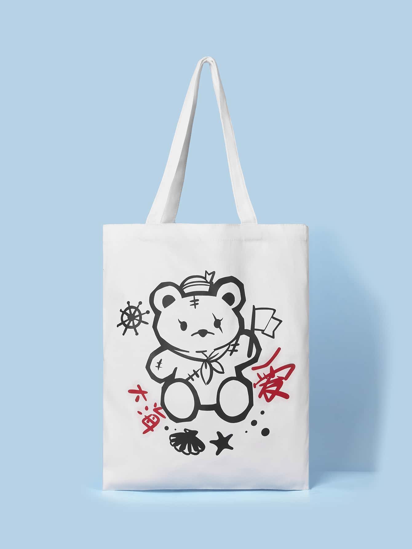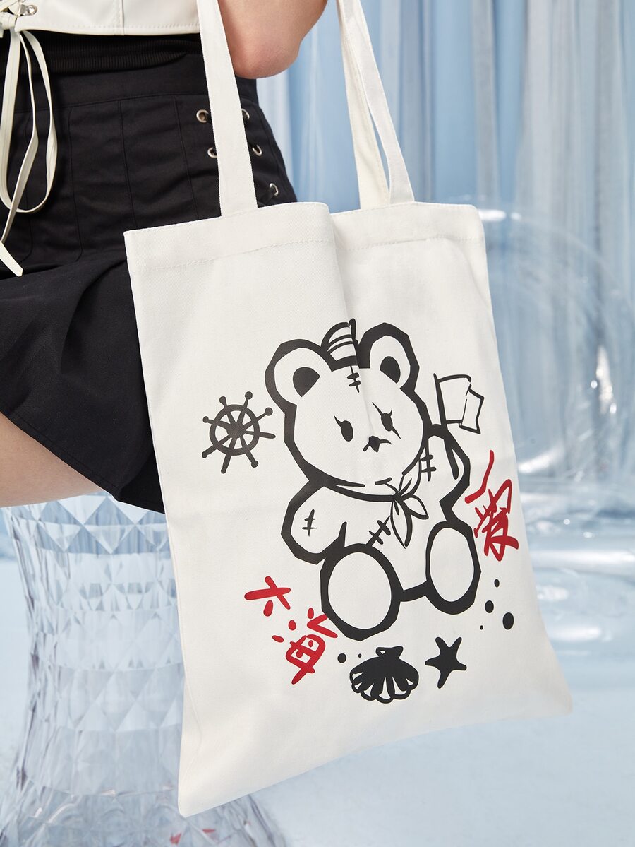 Kawaii حقيبة تسوق بجرافيك دب رسوم كارتون