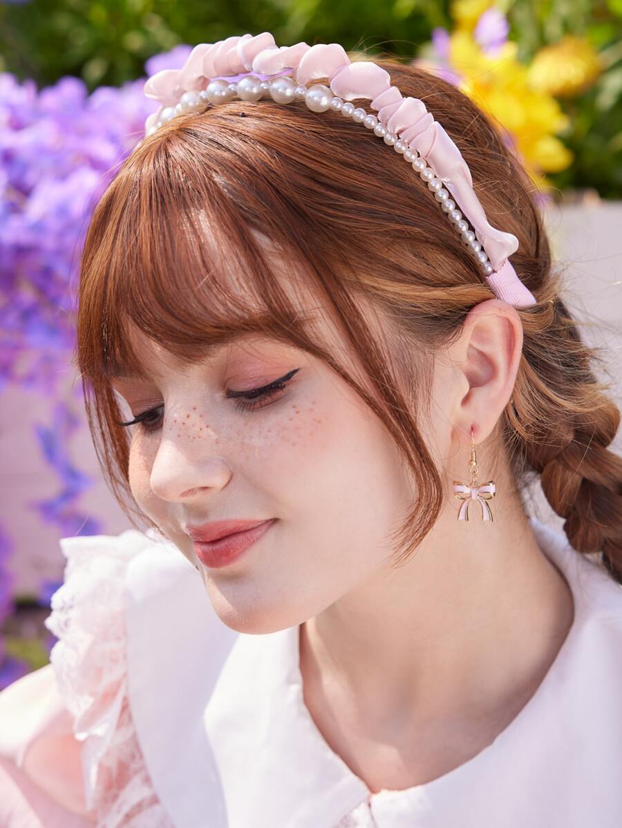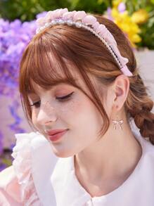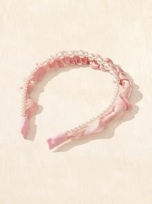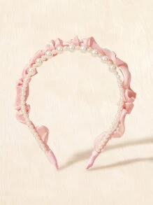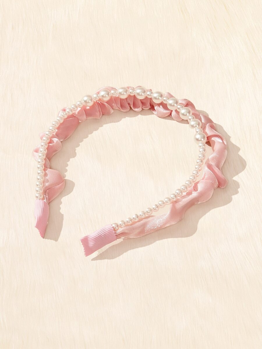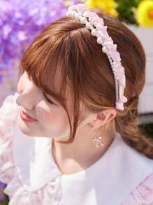 Kawaii طوق الشعر مزخرف بلؤلؤ اصطناعي ثنية