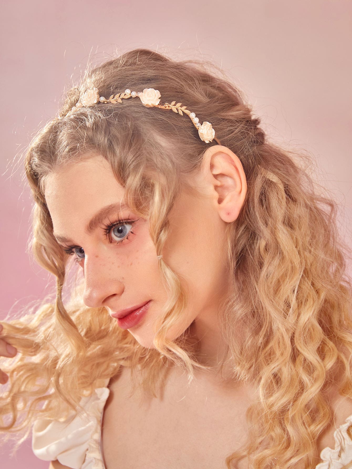Sweetness طوق الشعر لؤلؤ صناعي و مزخرف بزهر