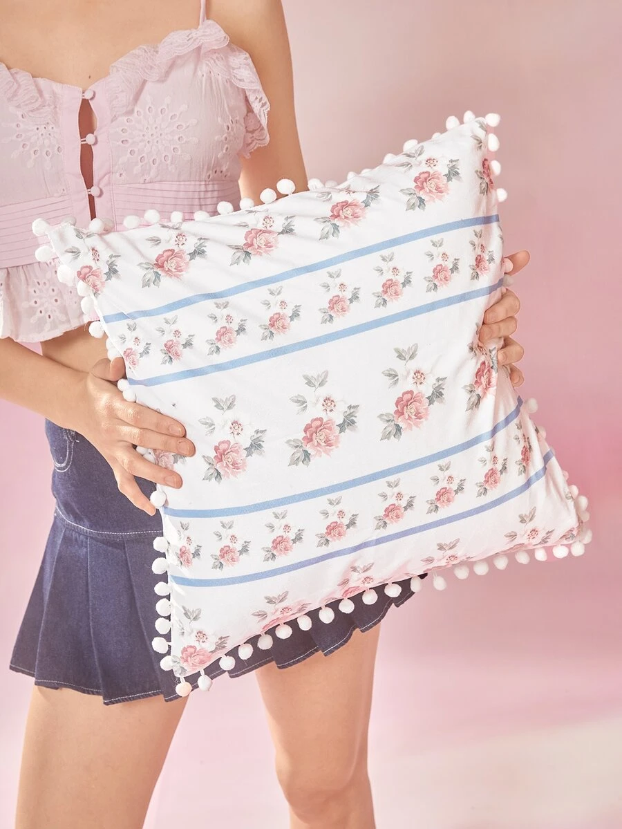 Sweetness غطاء وسادة بدون حشوة طباعة زهرة مزخرف بكرات مخملية