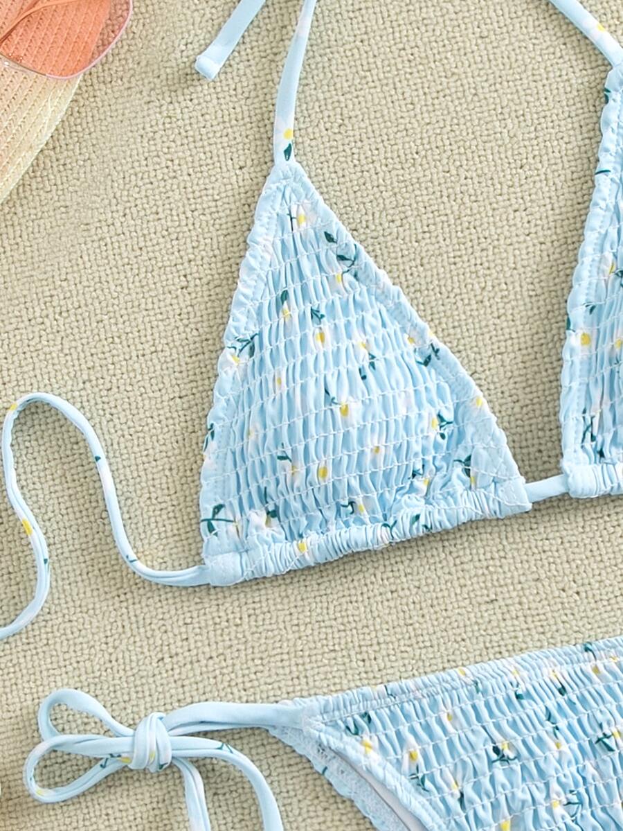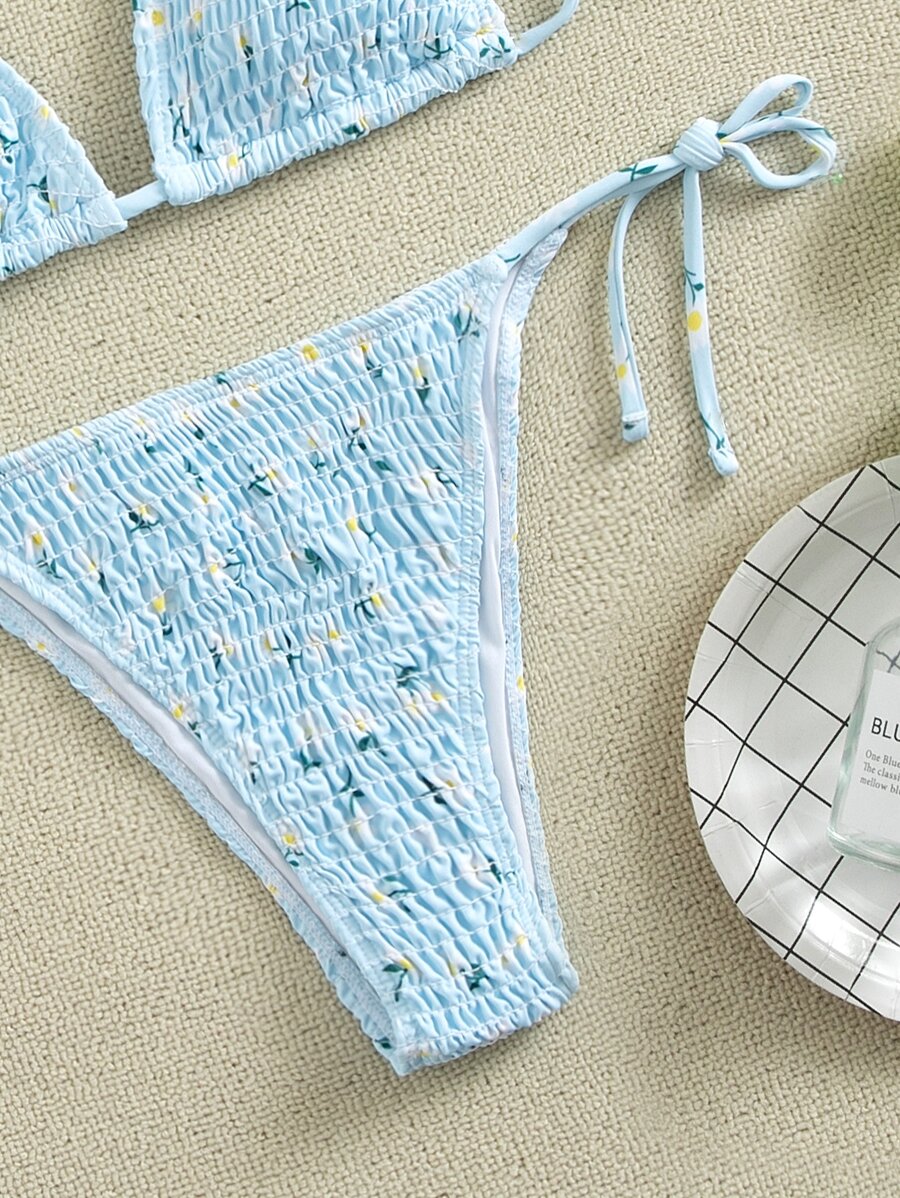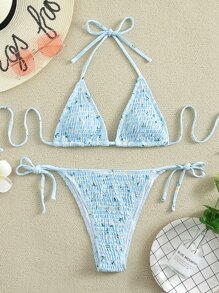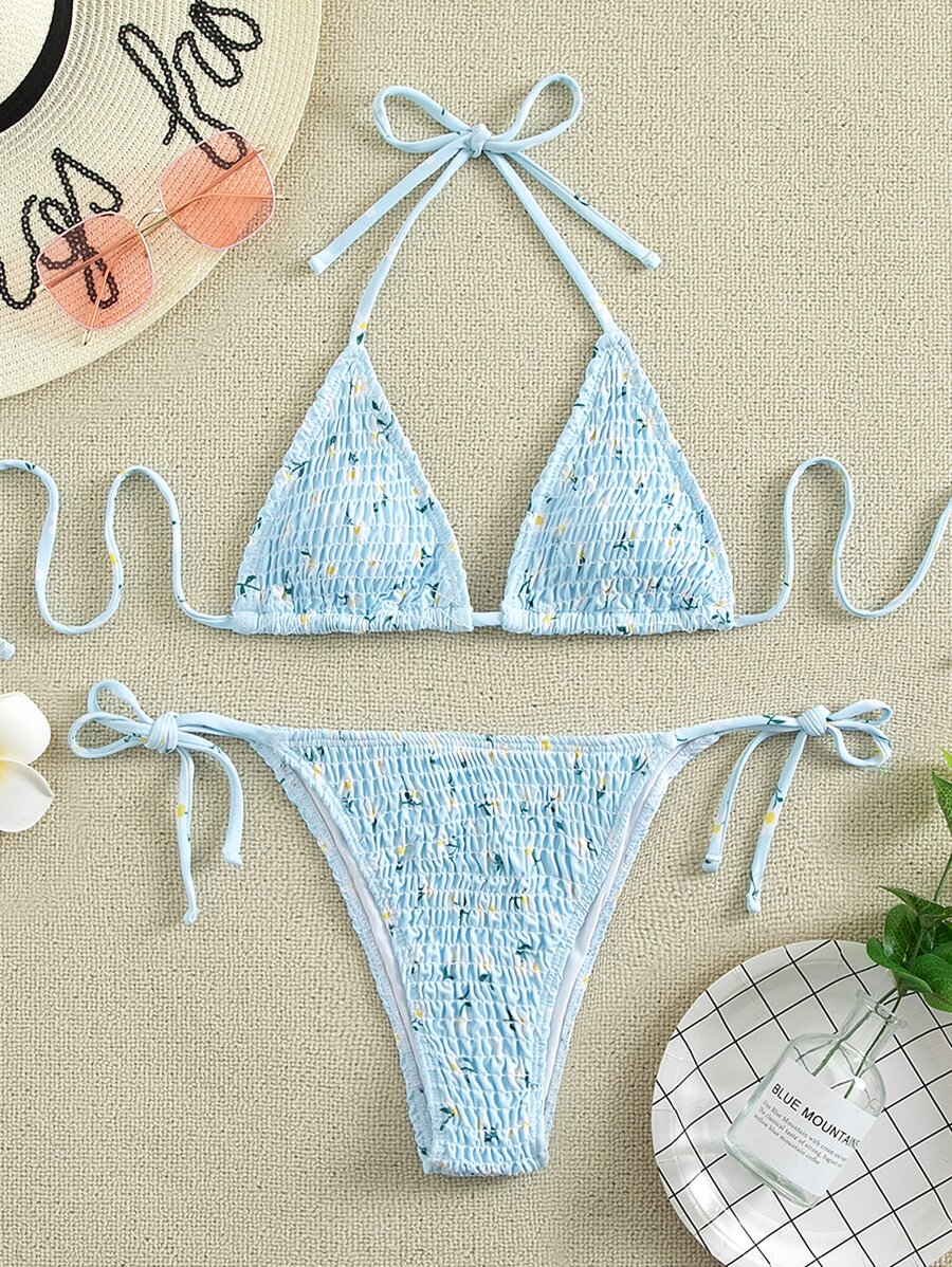 طقم بيكيني مطوي بطبعة الزهور ذات الحجم الصغير العشوائي