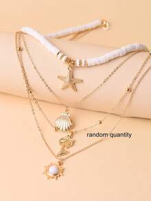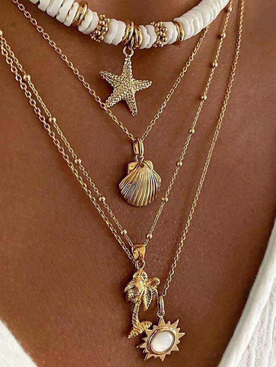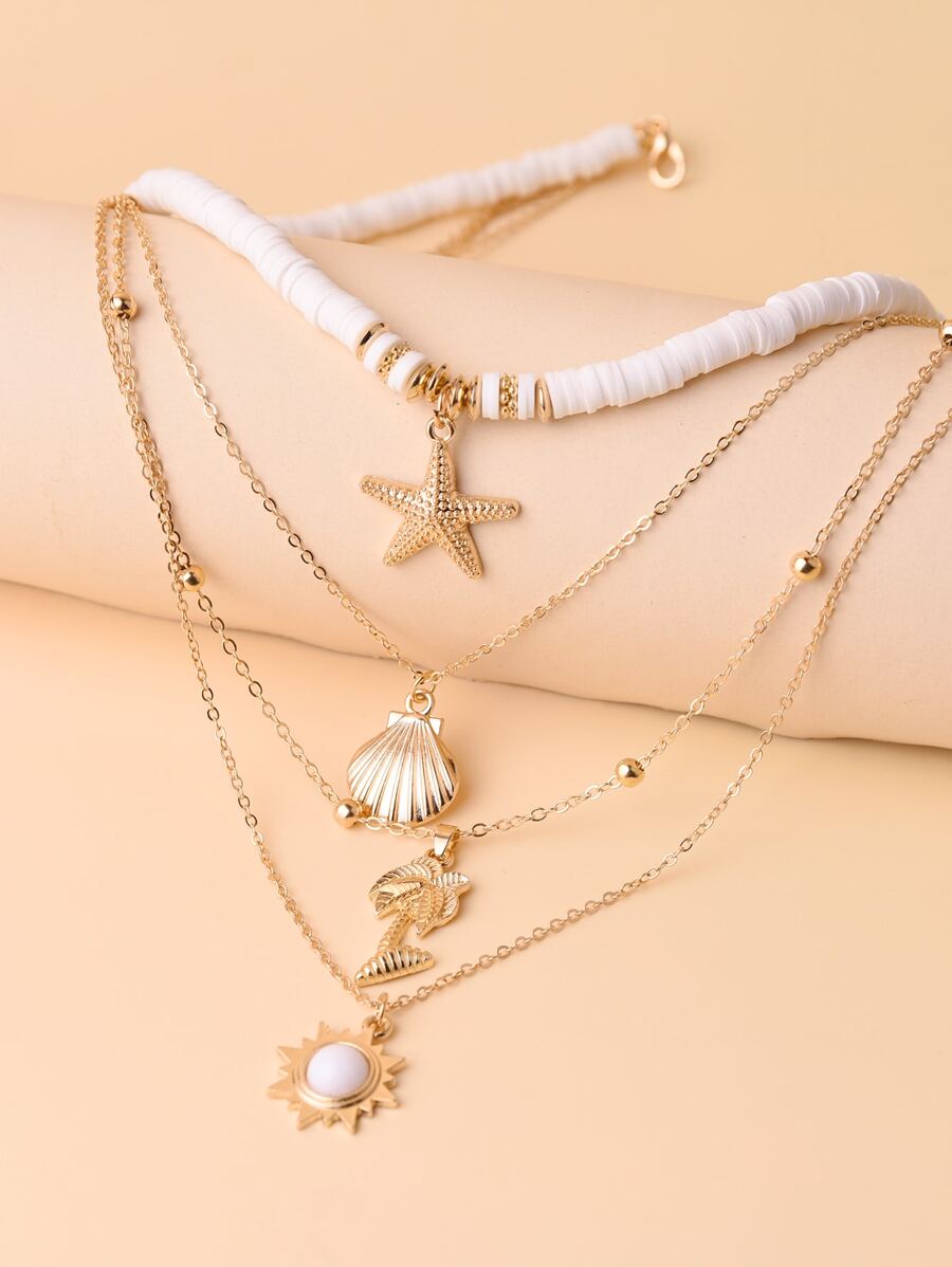 قلادة بطبقات عشوائي نجم البحر وصدف حلية