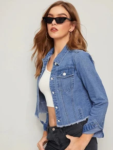 جاكيت من الدينيم بجيب مع ازرار امامية وبحافة خام