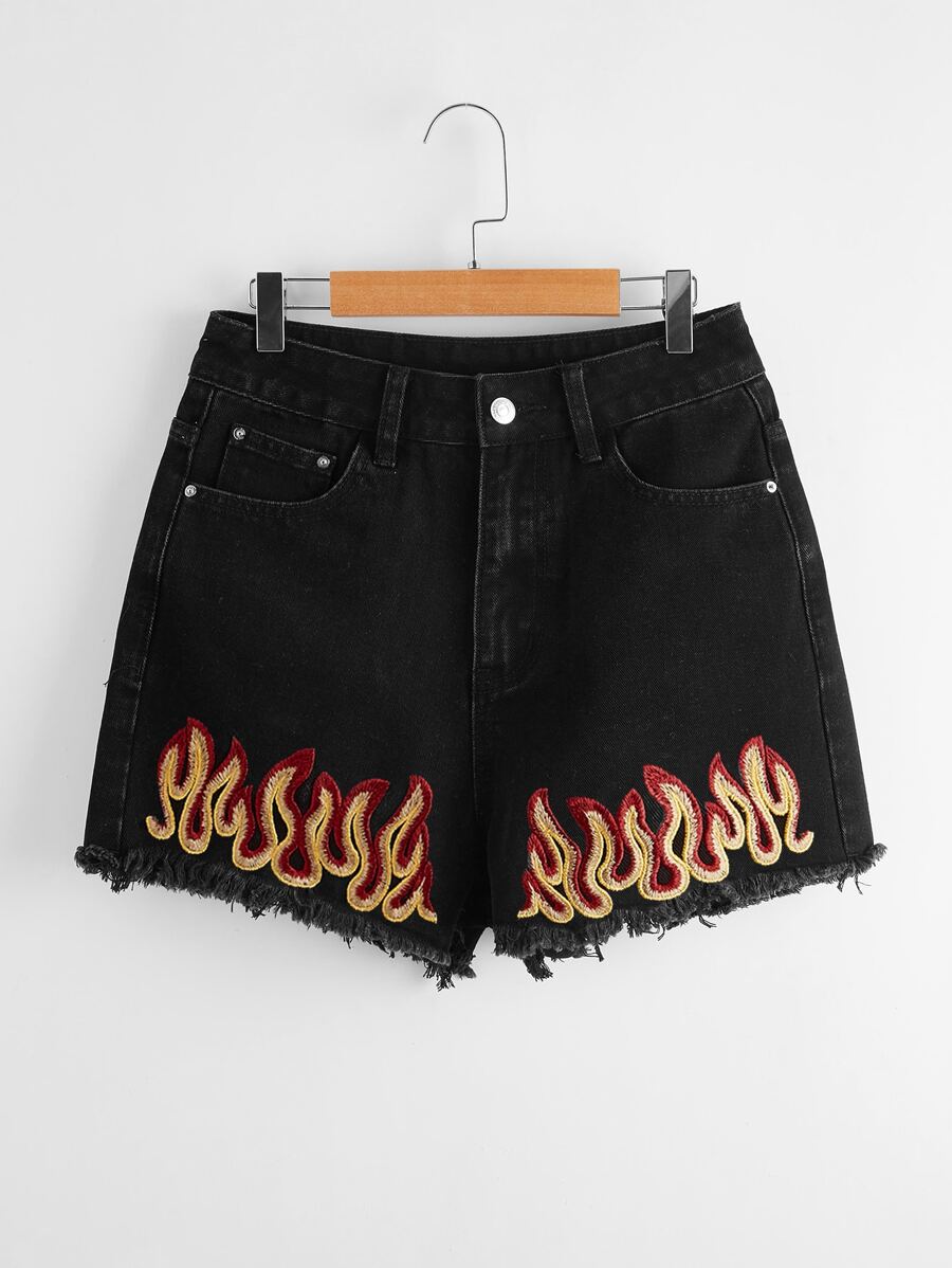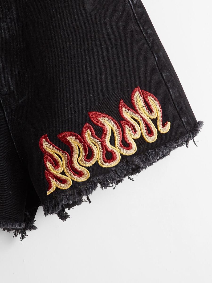 شورت دينيم التطريز نار