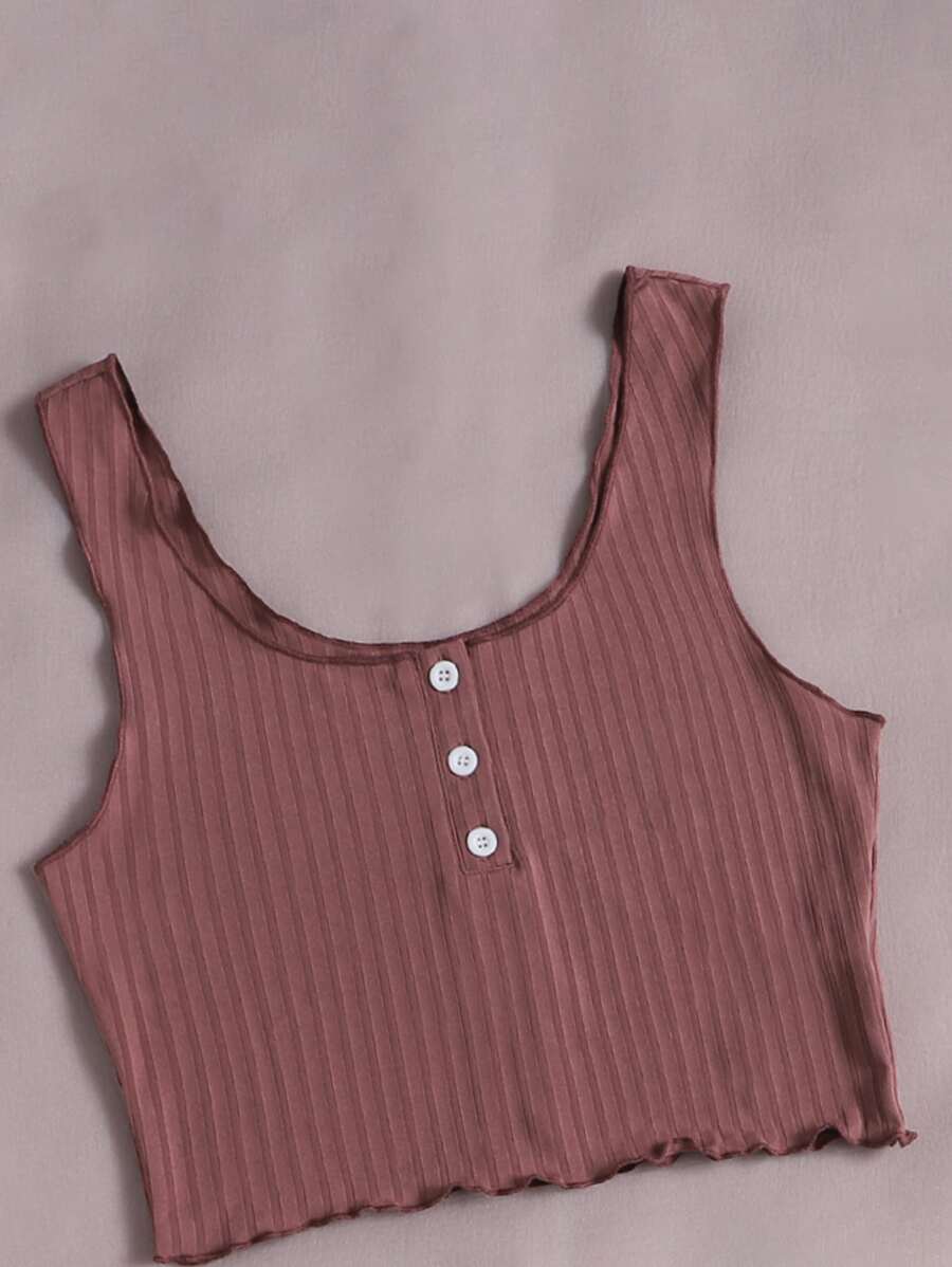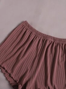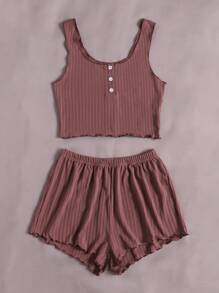 محبوك مضلع أزرار أمامية مقلم نمط نبات الخس لباس علوي تانك مع بنطلون قصير طقم بيجامة