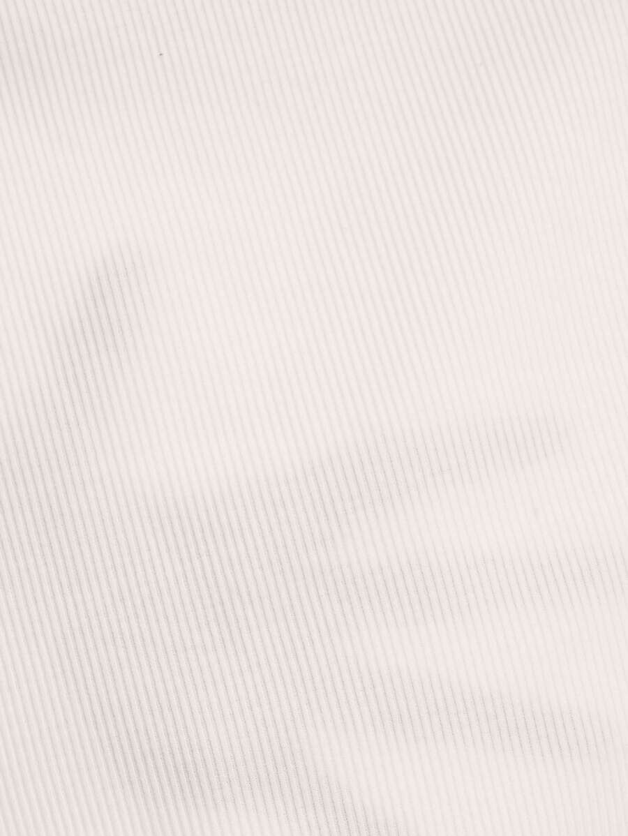 تيشيرت قصير مضلع بياقة قصيرة