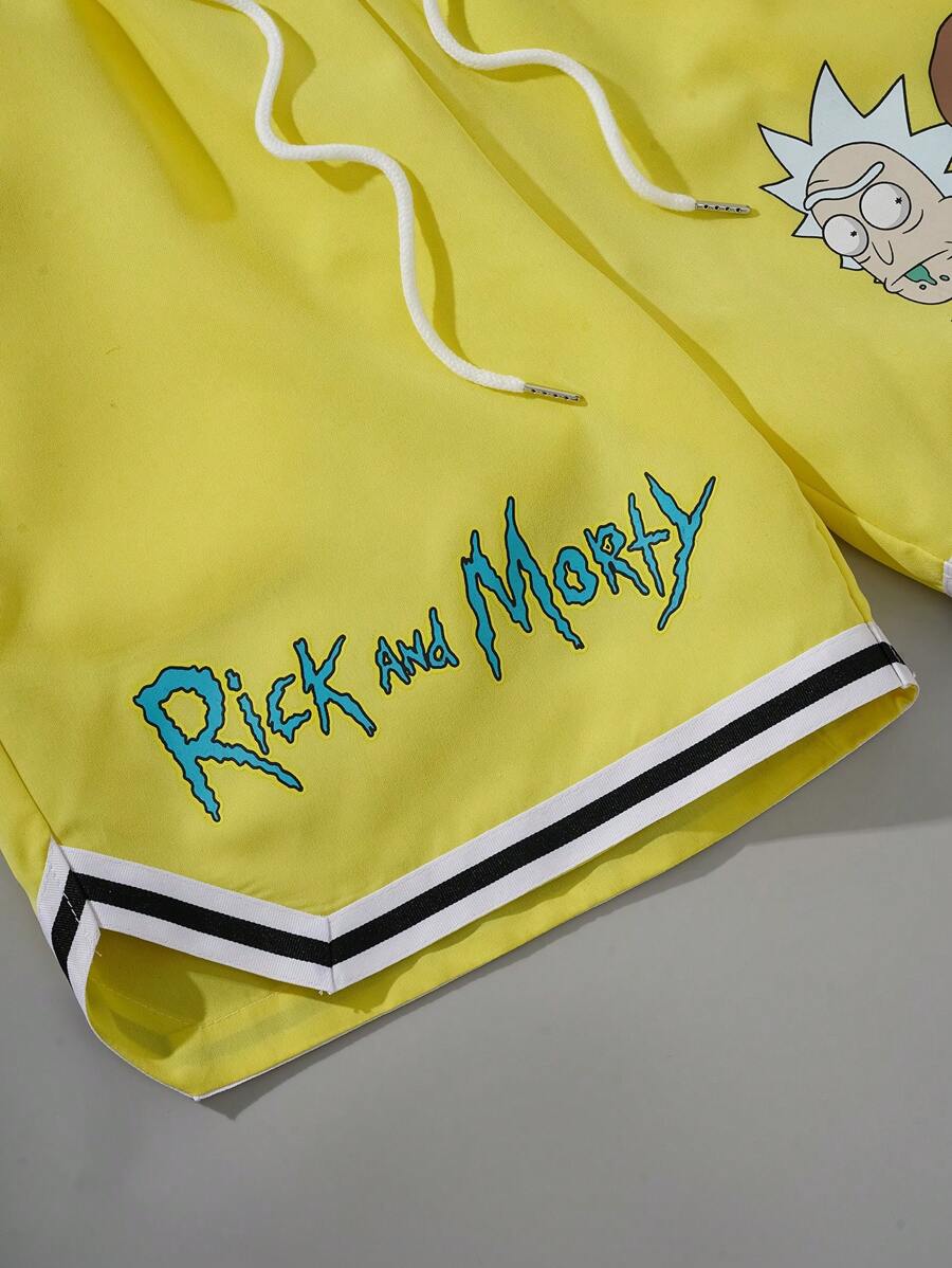 Rick and Morty | ROMWE شورت بسحاب خصر كاجوال صيفي للرجال بطباعة رسوم كرتونية وحروف