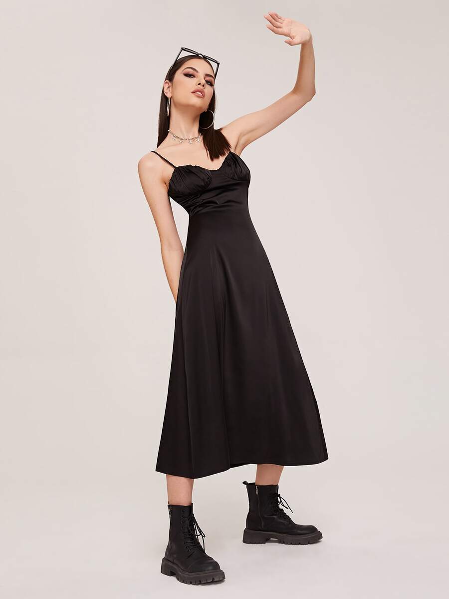 فستان كامي ساتان بصدر مكشكش