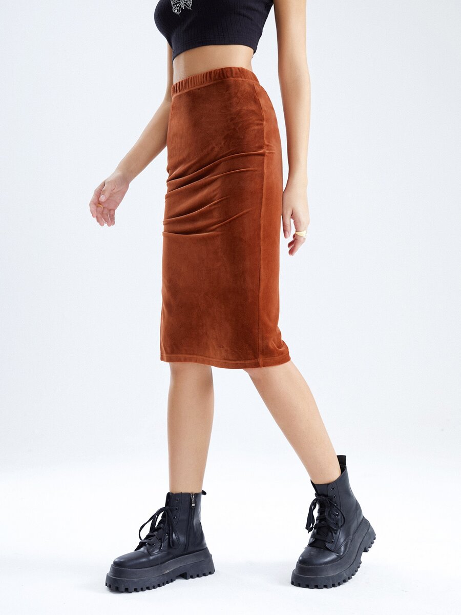 تنورة ثنية رباط فتحة للفخذ مخملي