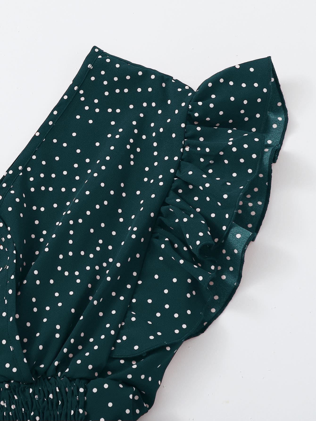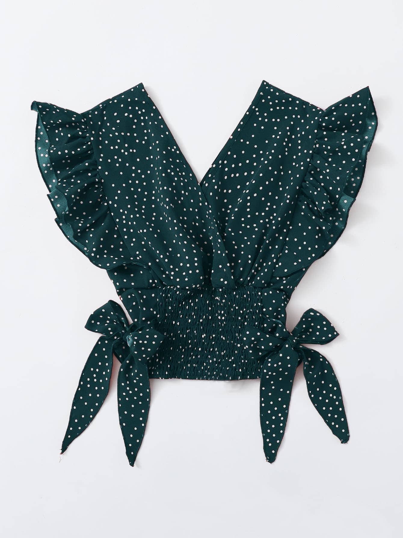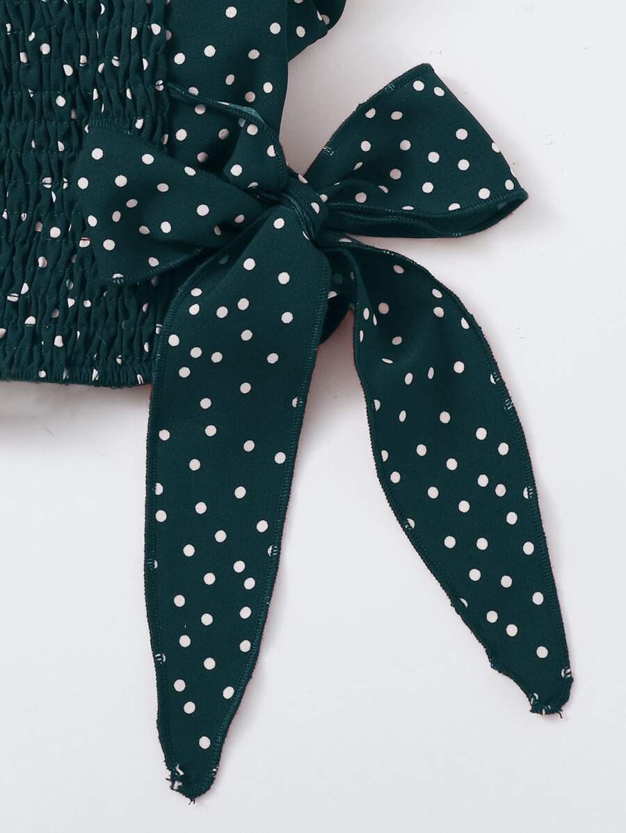لباس علوي بنقاط بلوكا بحافة مدروز وباكمام مكشكش