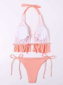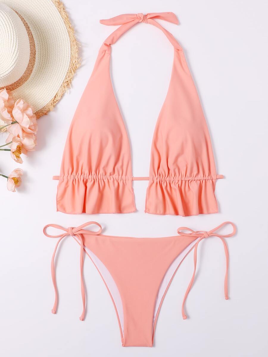 مجموعة بيكيني بربطة جانبية وطية رايبوند قاع البكيني مع زخارف