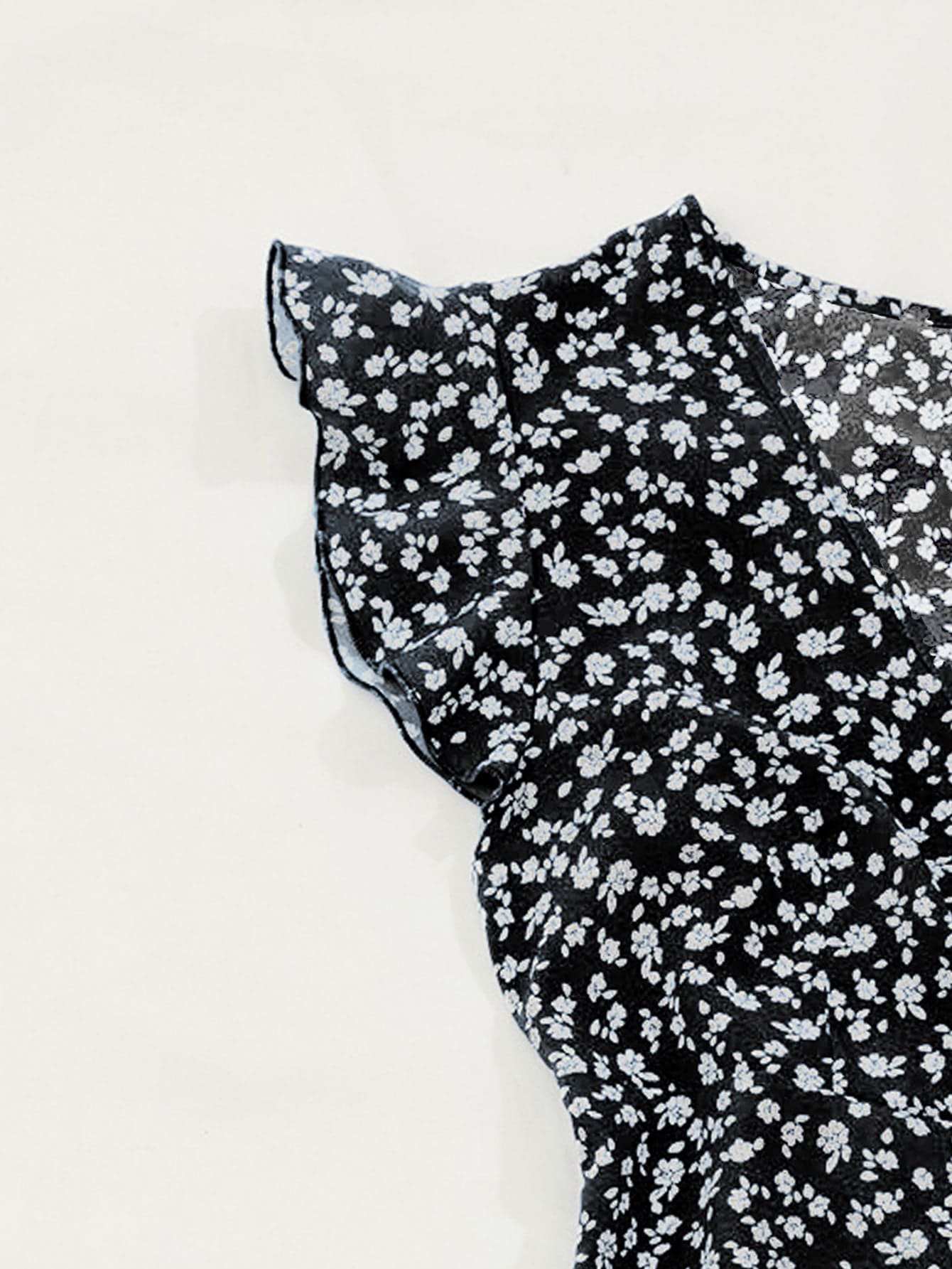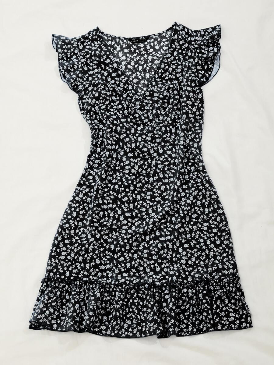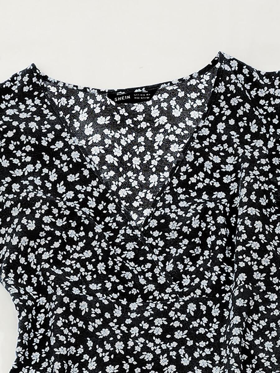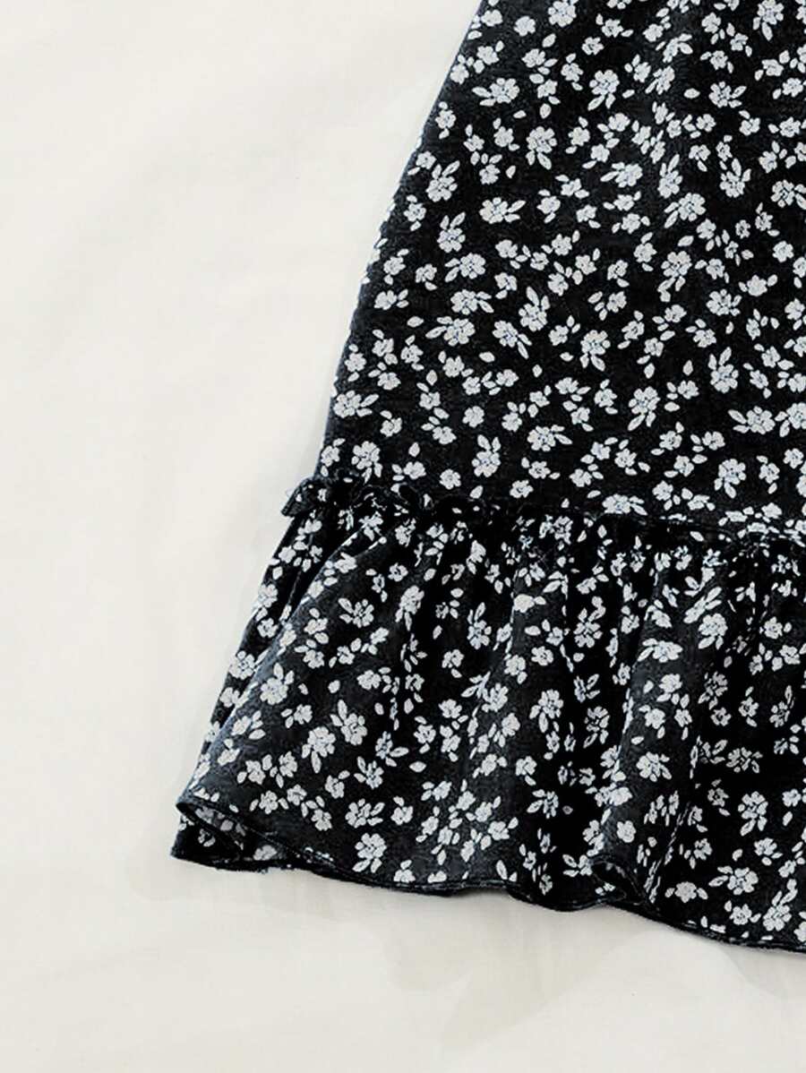 فستان بطباعة زهر أقحوان مقلم مكشكش