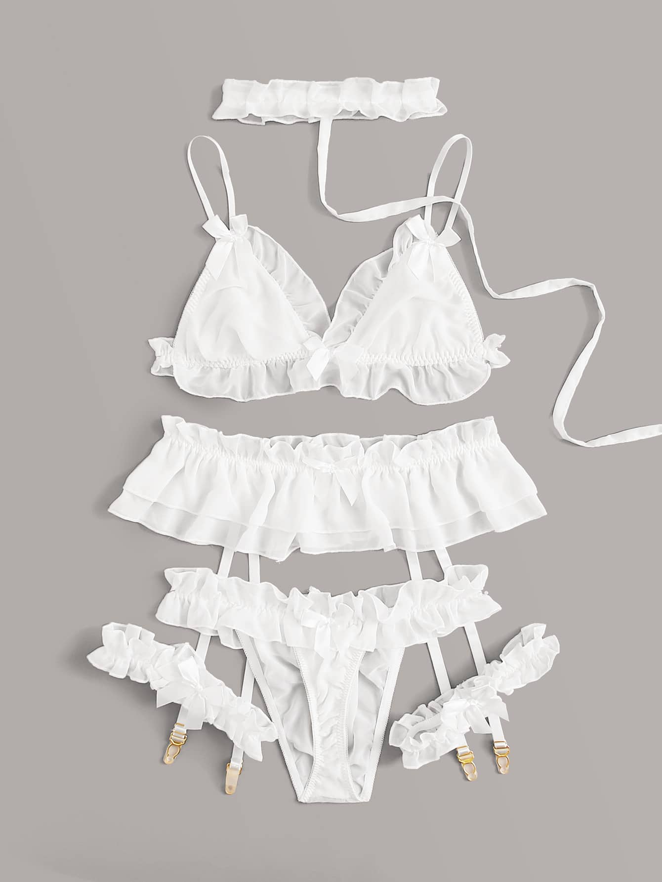 طقم ملابس داخلية مع شريط كشكش وطوق للرقبة