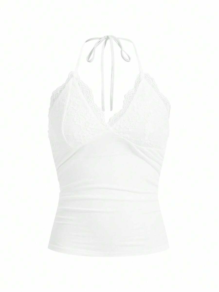 SHEIN x PRISCILA & JIMENA لباس علوي رسن دانتيل متباين اللون