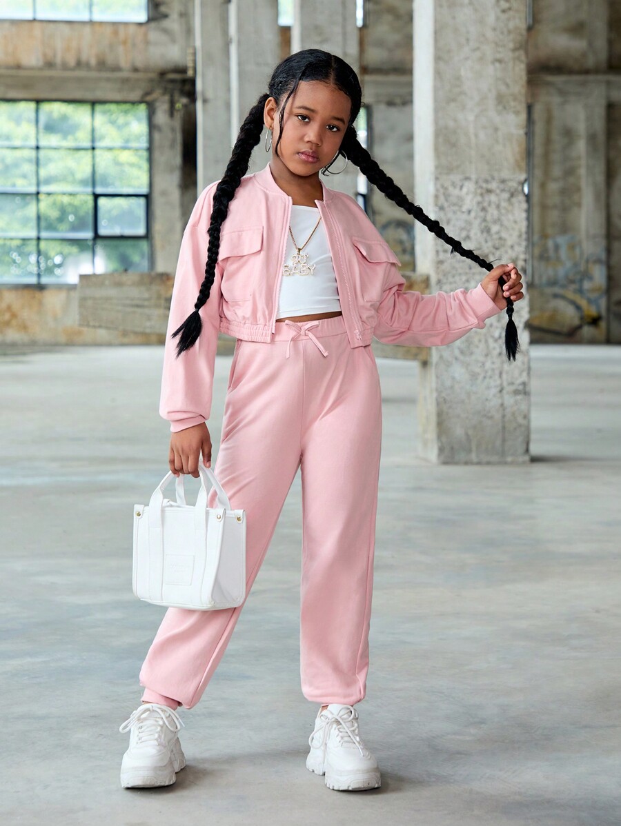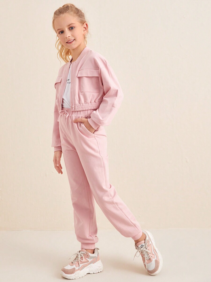 بدلة تريكو للفتيات المراهقات مكونة من بلوزة مع جيوب وبنطلون جوجر