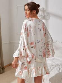 ساتان طباعة زهور حافة مكشكشة روب بحزام بدون فستان ليلي