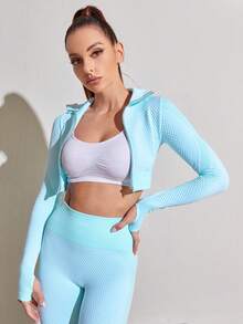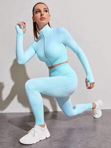 جيب زيبر بمحاذاة محكمة للملابس الرياضية وسروال ضيق مرن بخصر واسع