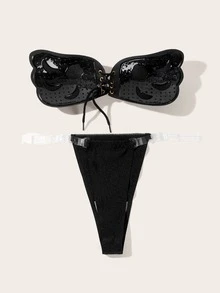 طقم لانجري تونغ مع حمالة صدر لاصق ذاتي