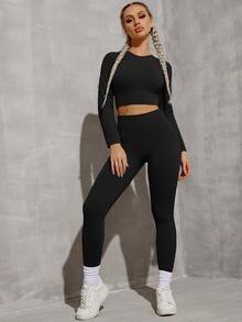 طقم تيشرت رياضي ولباس ضيق قطعتين من نسيج ناعم وملائم