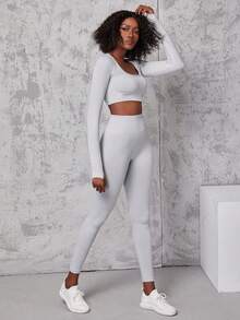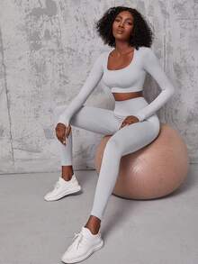 طماق مع تي شيرت رياضي عالي المرونة سلس