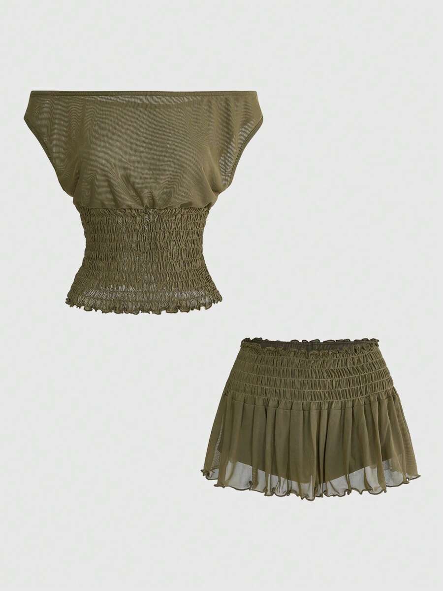 طقم قصير أخضر عسكري مكون من توب وشورت مثير