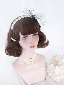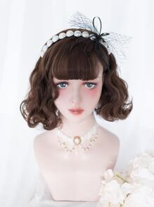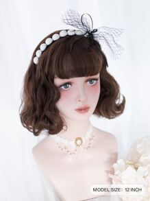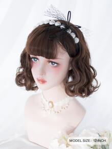 شعر مستعار صناعي قصير مجعد مع شعر ناصية