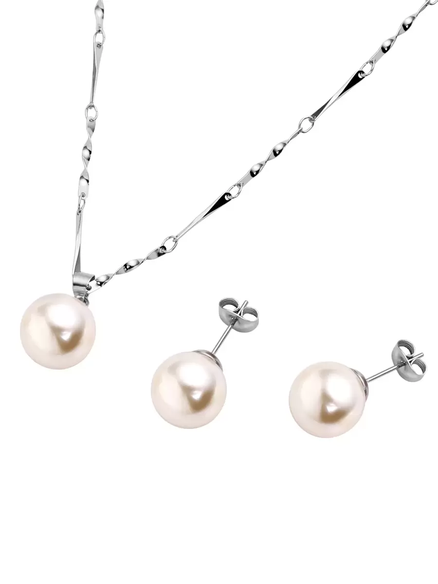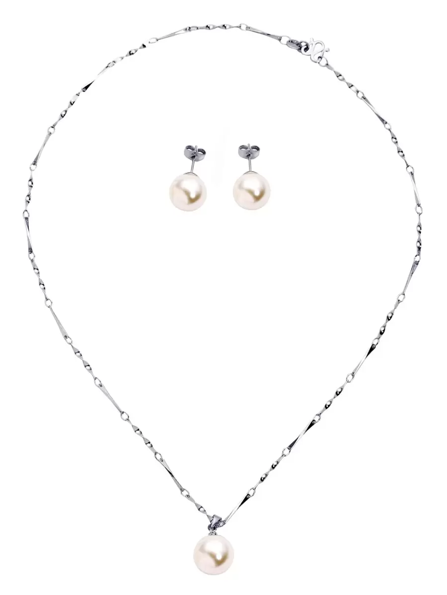 Silver Metal Faux Pearl Jewelry Set