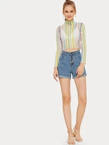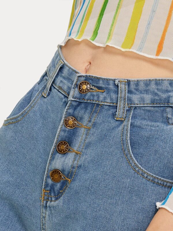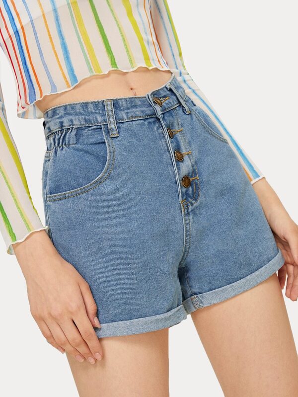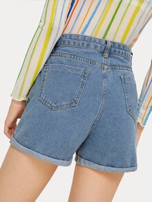 سروال قصير من الدينيم بحافة ملتف و بأزرار احادية