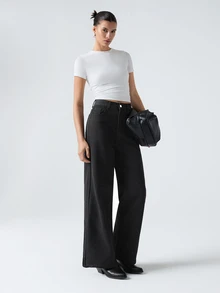 بنطلون جينز بويفريند بجيب مائل وخصر عالي