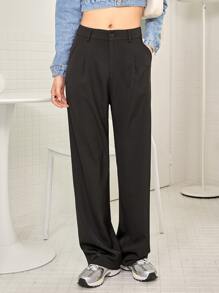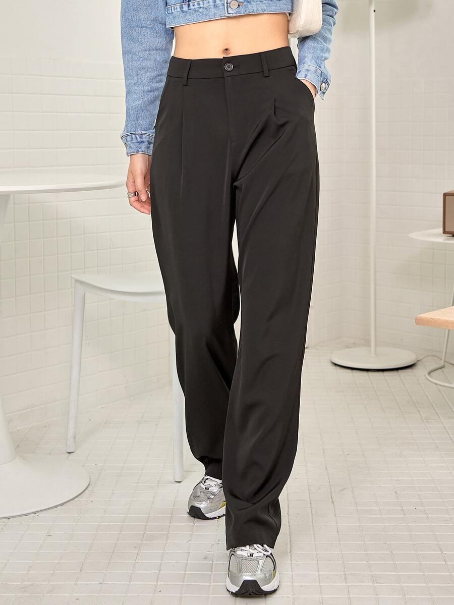 بنطلون مصمم بجيب مائل بقصة مستقيمة ولون سادة