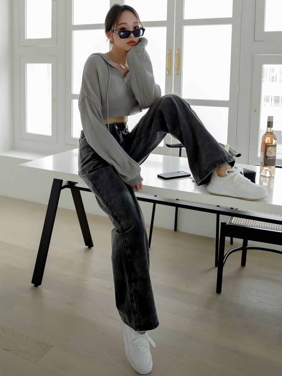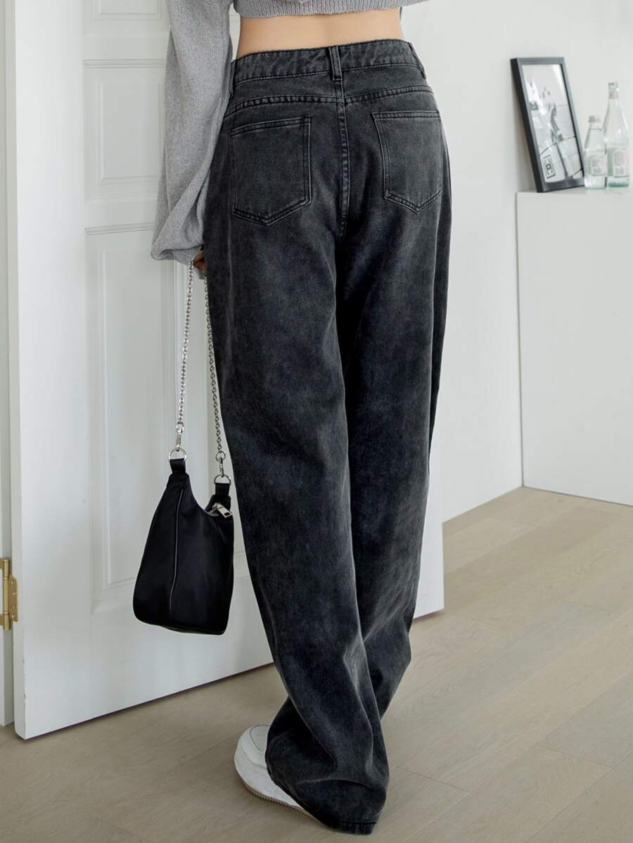 بنطلون جينز بساق مستقيم وبجيب مائل
