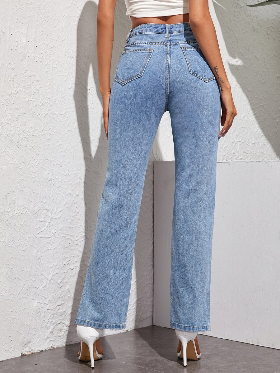 بنطلون جينز بحافة شق ومغسول لامع بدون حزام