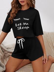 طقم بيجامة منخفض الكتف بجرافيك شعار