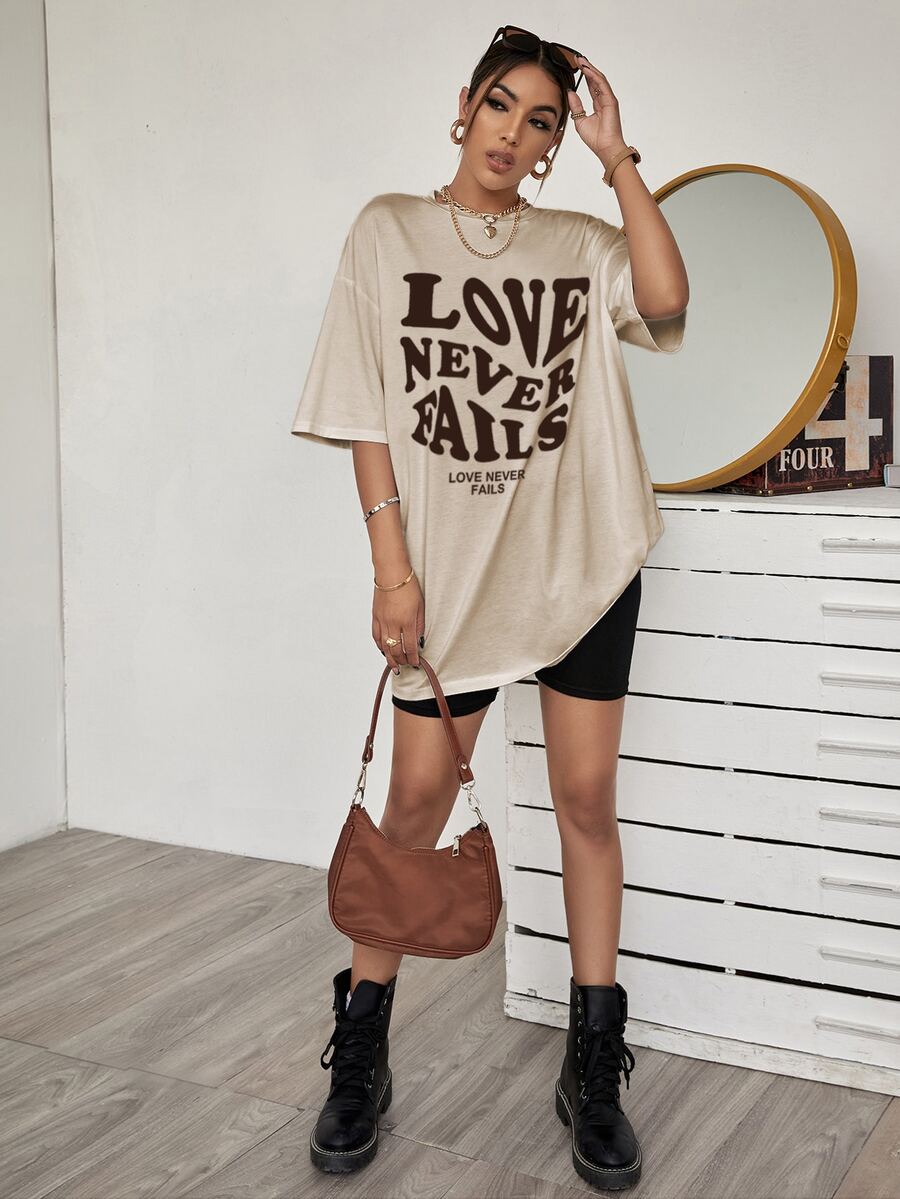 تي شيرت منخفض الكتف وبجرافيك عبارة