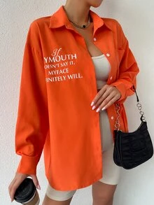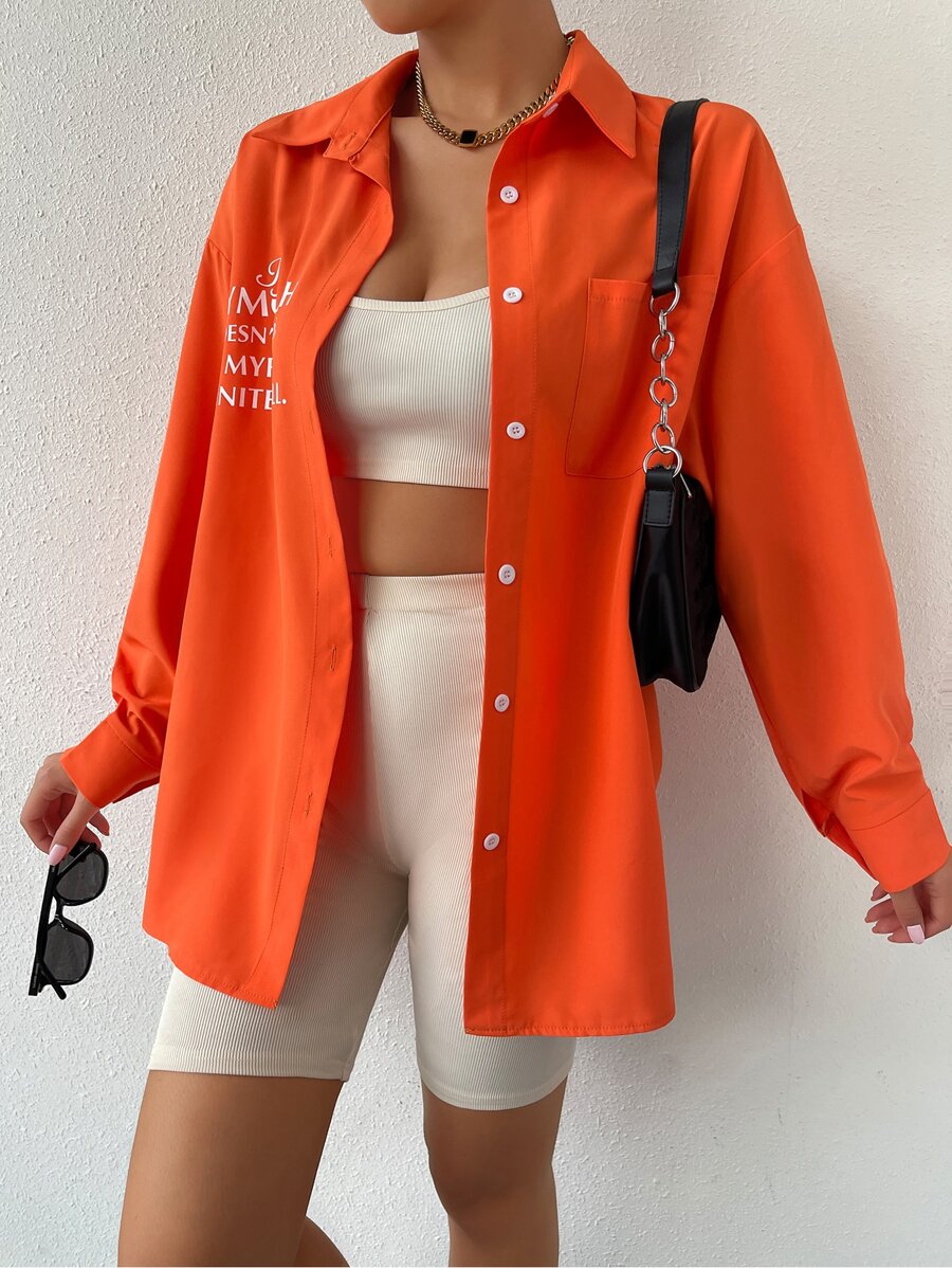 قميص كبير منخفض الاكتاف وجيب مرقع وطباعة شعار