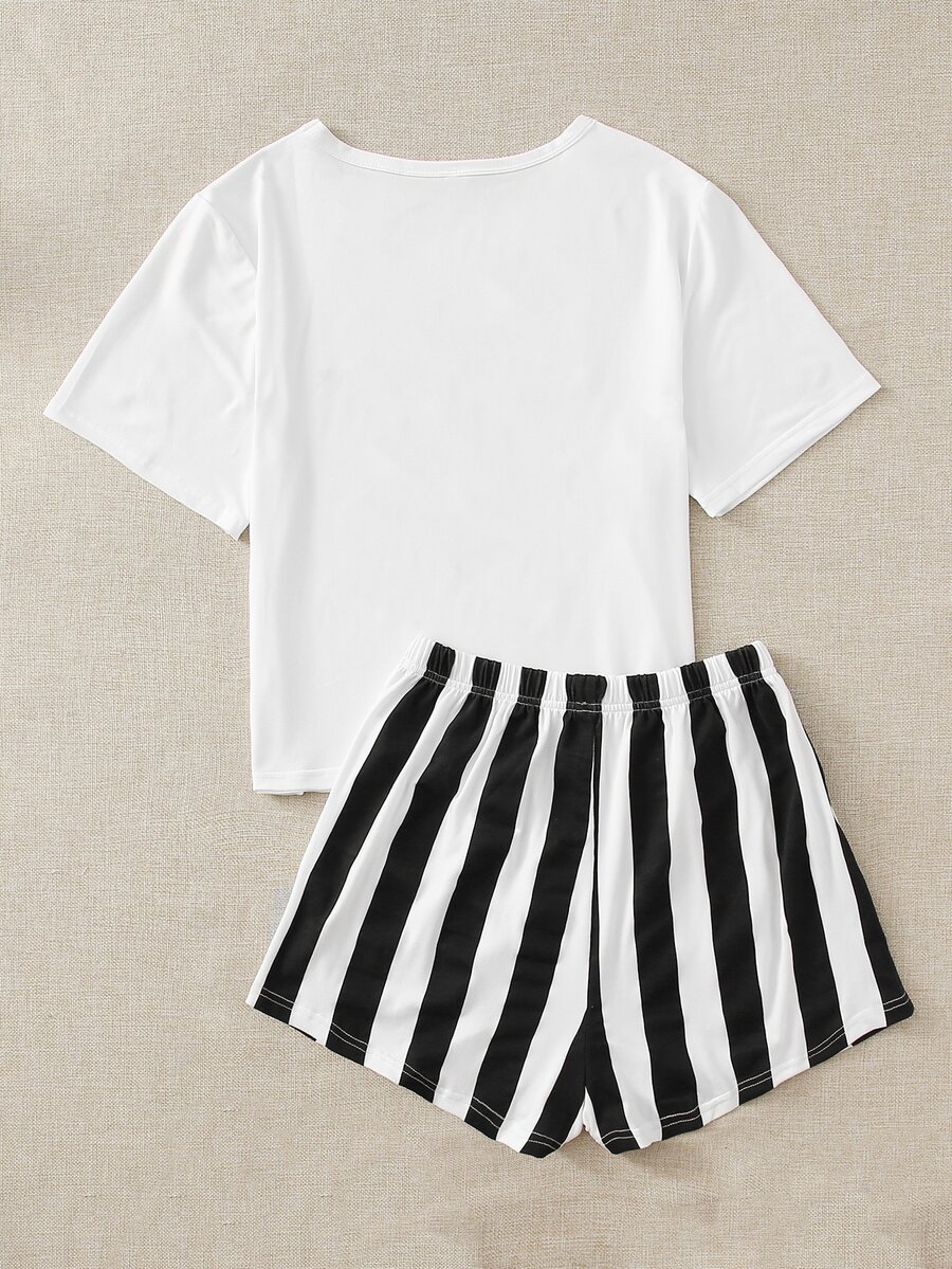 طقم بيجامة سروال قصير مخطط مع تي شيرت بجرافيك شعار