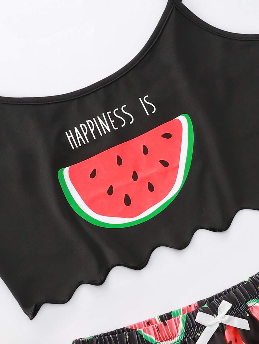 طقم بيجامة بربطة قوس ببطيخ وشعار
