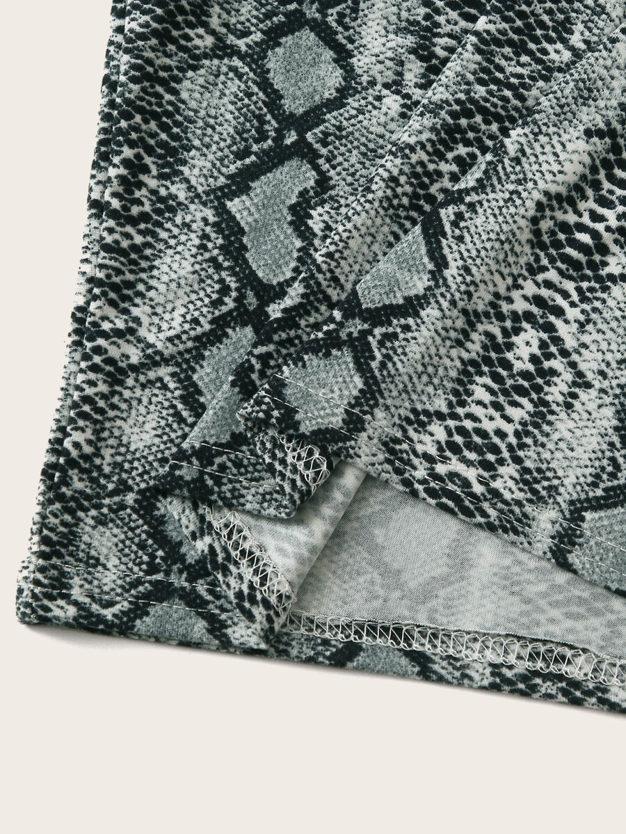 تي شيرت بعنق مستدير وبطباعة جلد الثعبان
