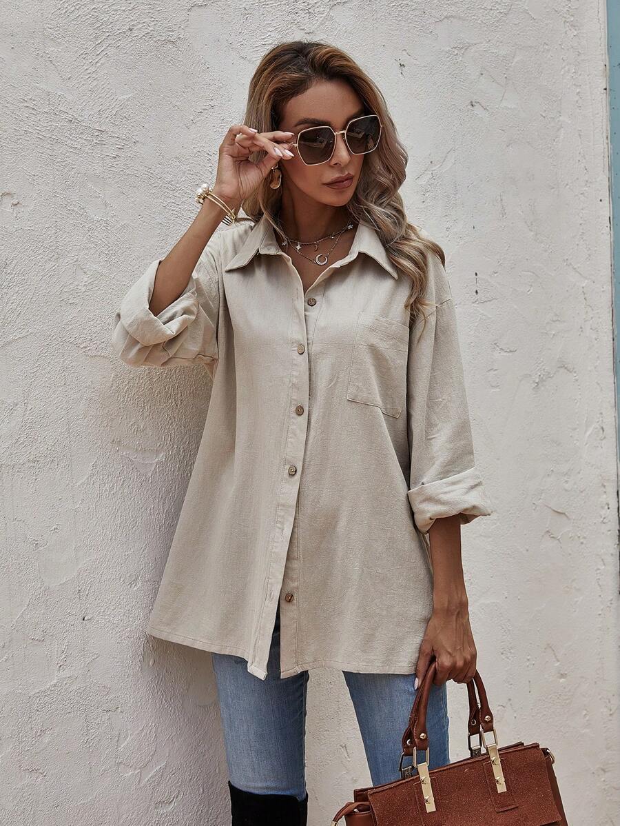 قميص كاجوال بلون صلب وأكمام طويلة ذو مقاس كبير