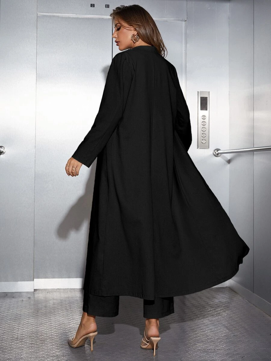 تانك توب موحد اللون بأزرار أمامية وبنطلون بساق واسع ومعطف