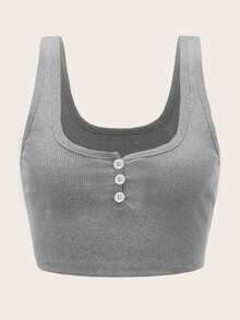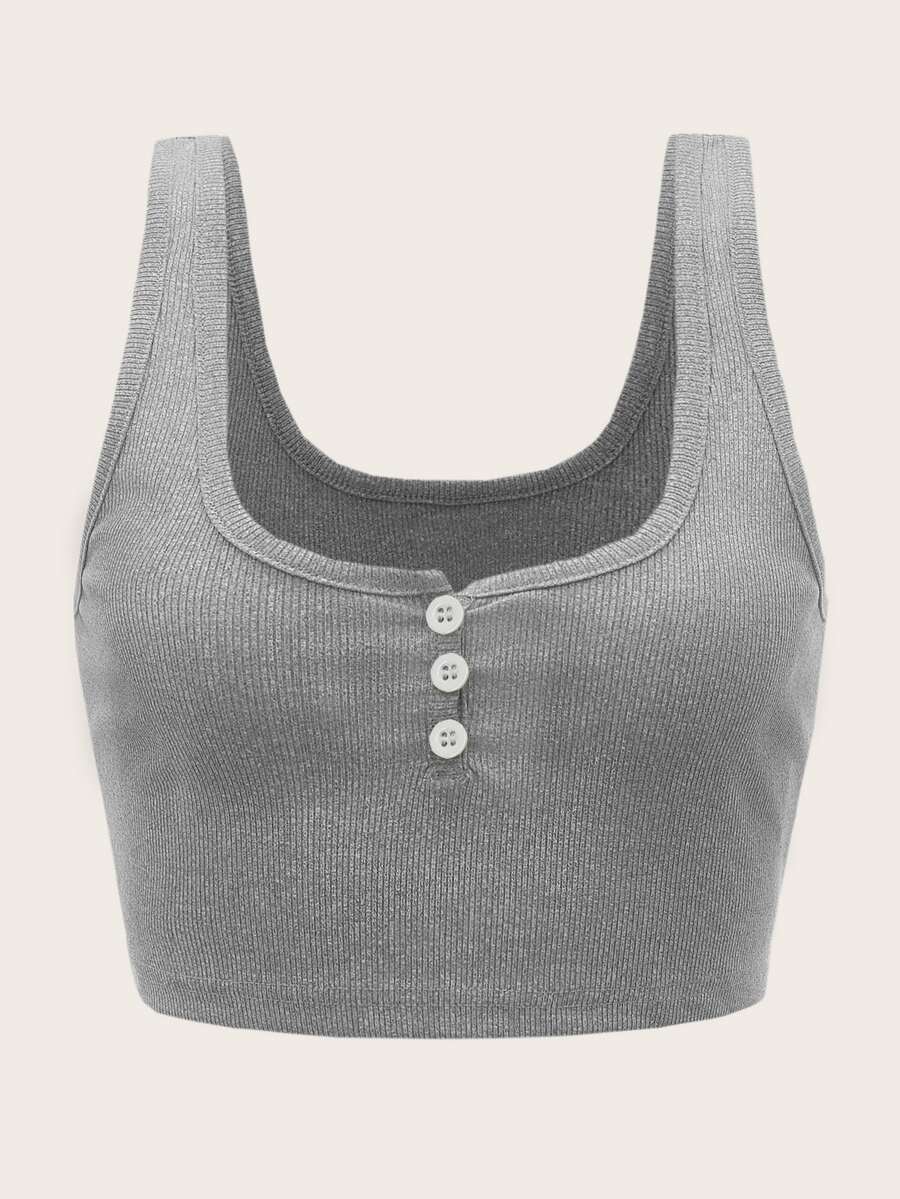 قميص بدون أكمام مقلّم بأزرار وقصير المقاس