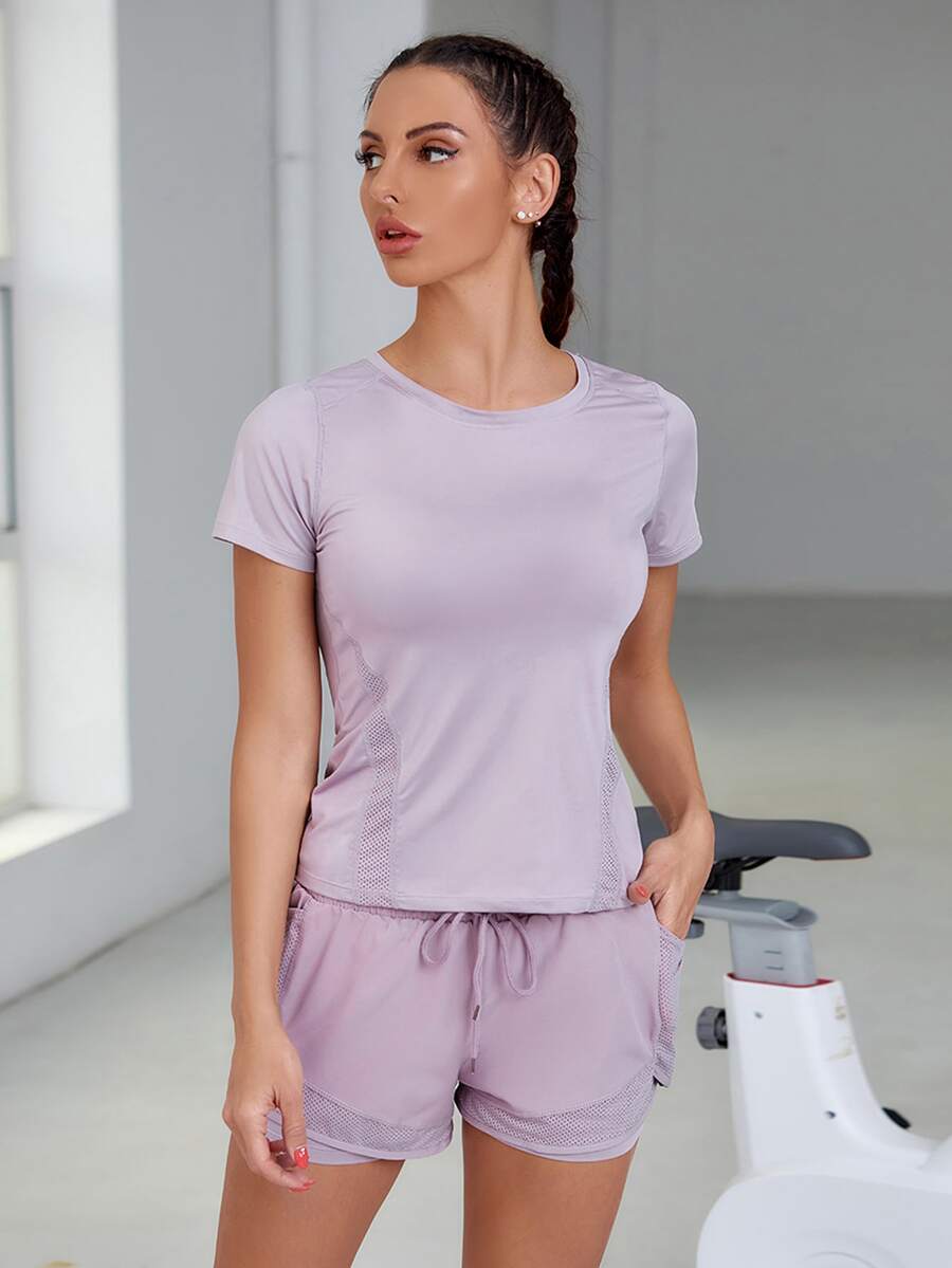 طقم لباس رياضي نمط شبكة صيد السمك متباين بلون موحد