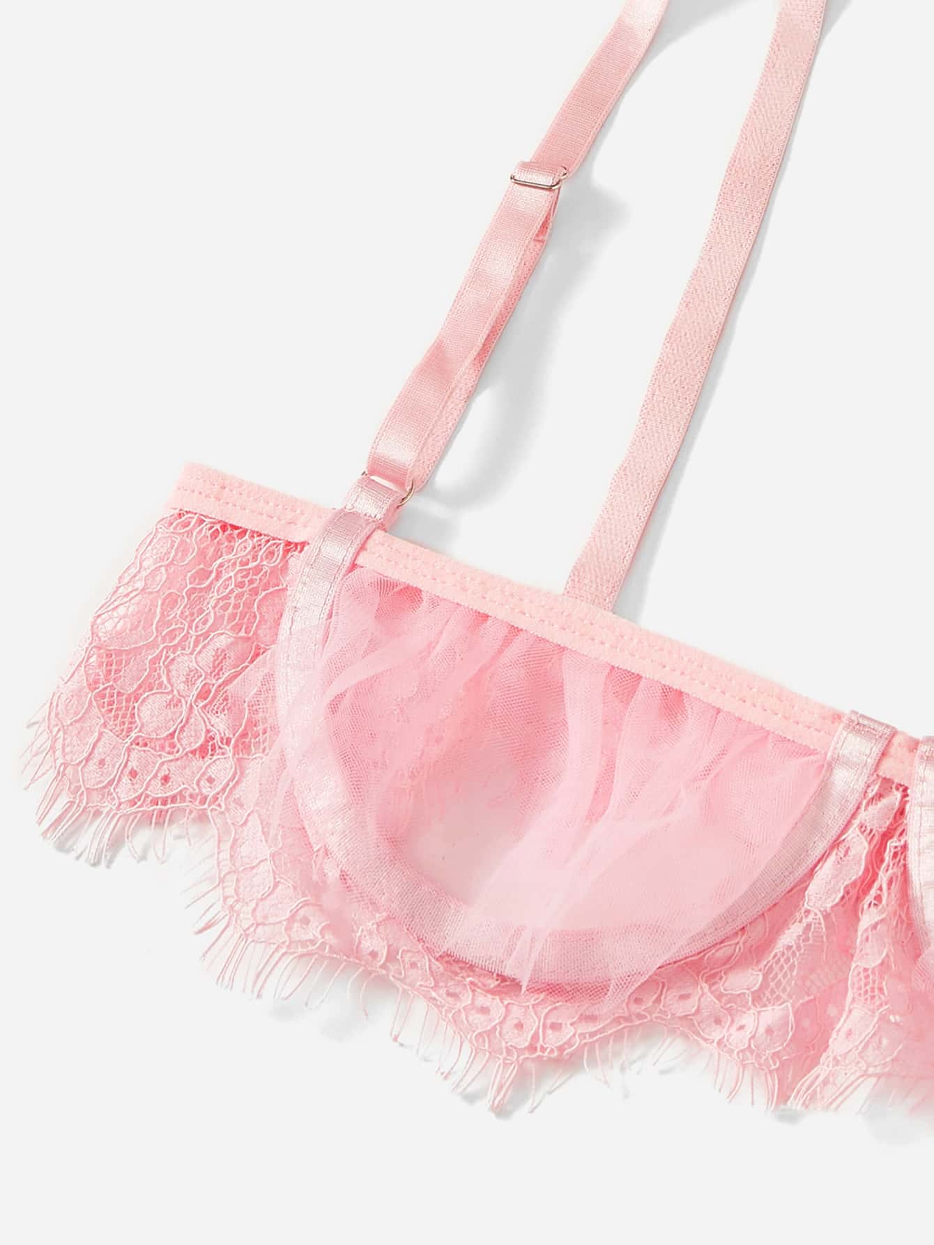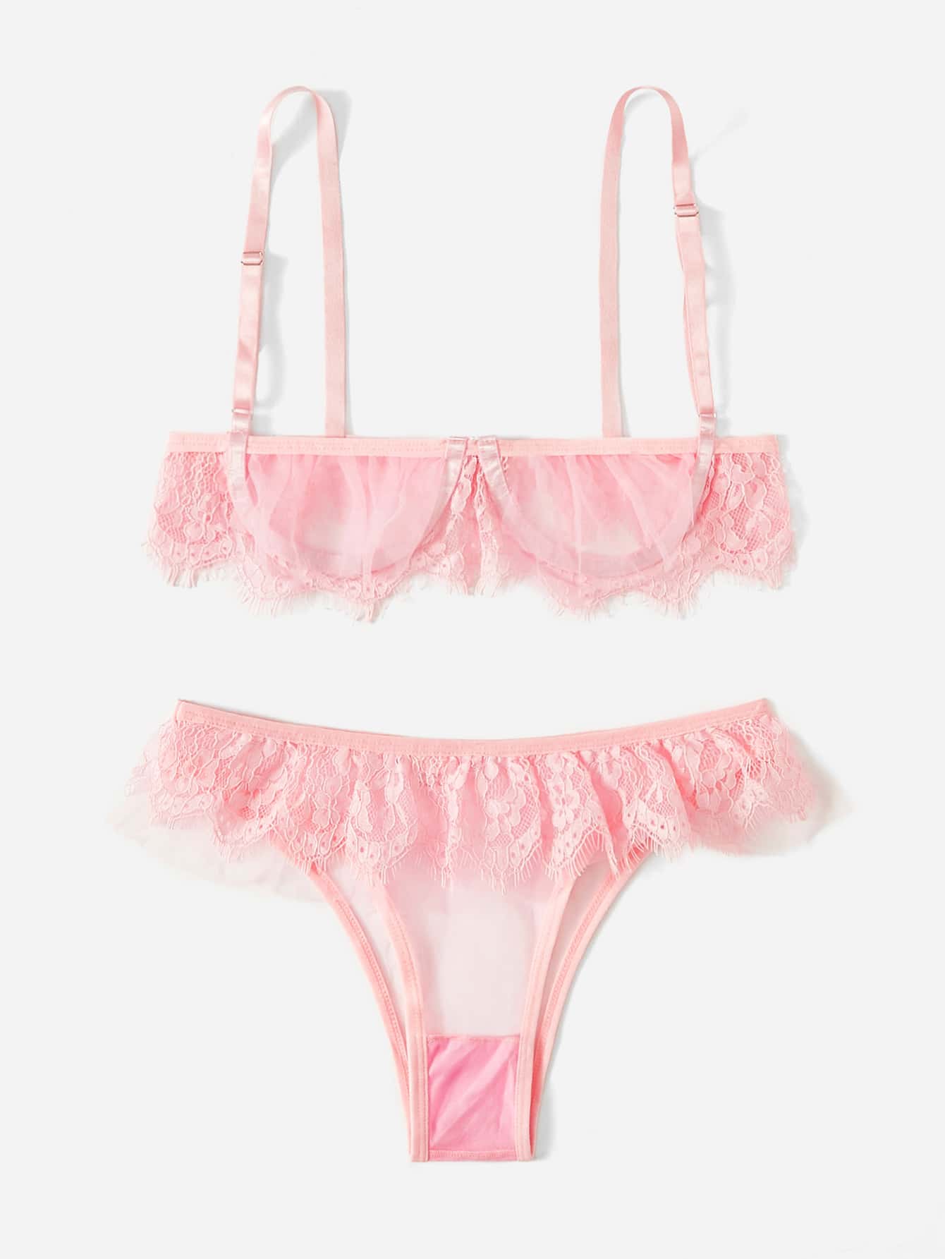 طقم ملابس داخلية موحدة اللون دانتيل متباين اللون