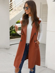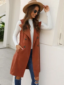 صدرية ترنش بياقة شلال وبصفين من الازرار بلون موحد