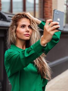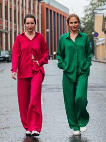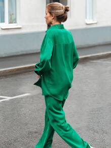 طقم قميص منخفض الاكتاف موحد اللون وبنطلون