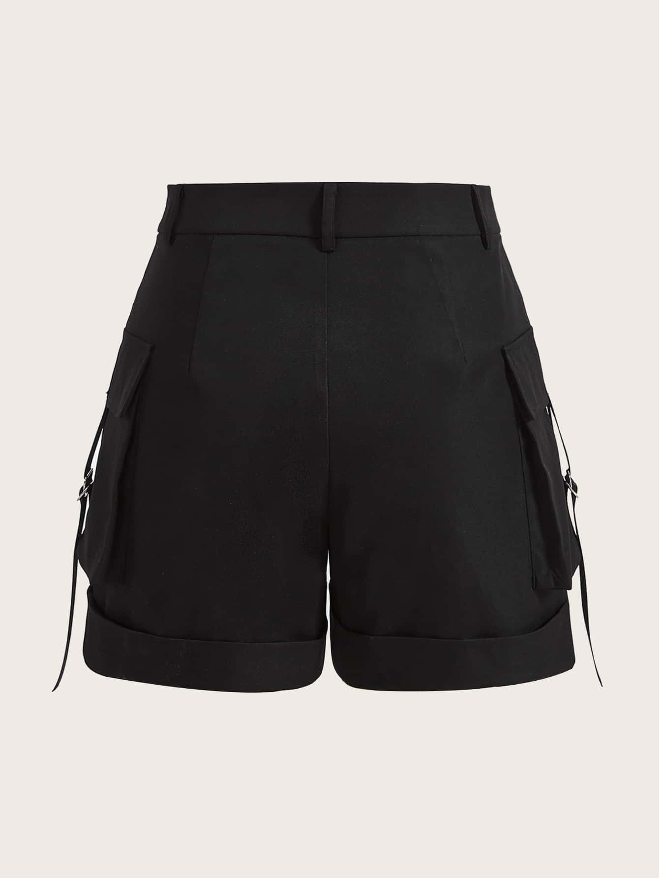 Grunge Punk بنطلون قصير موحدة اللون جيب قلاب